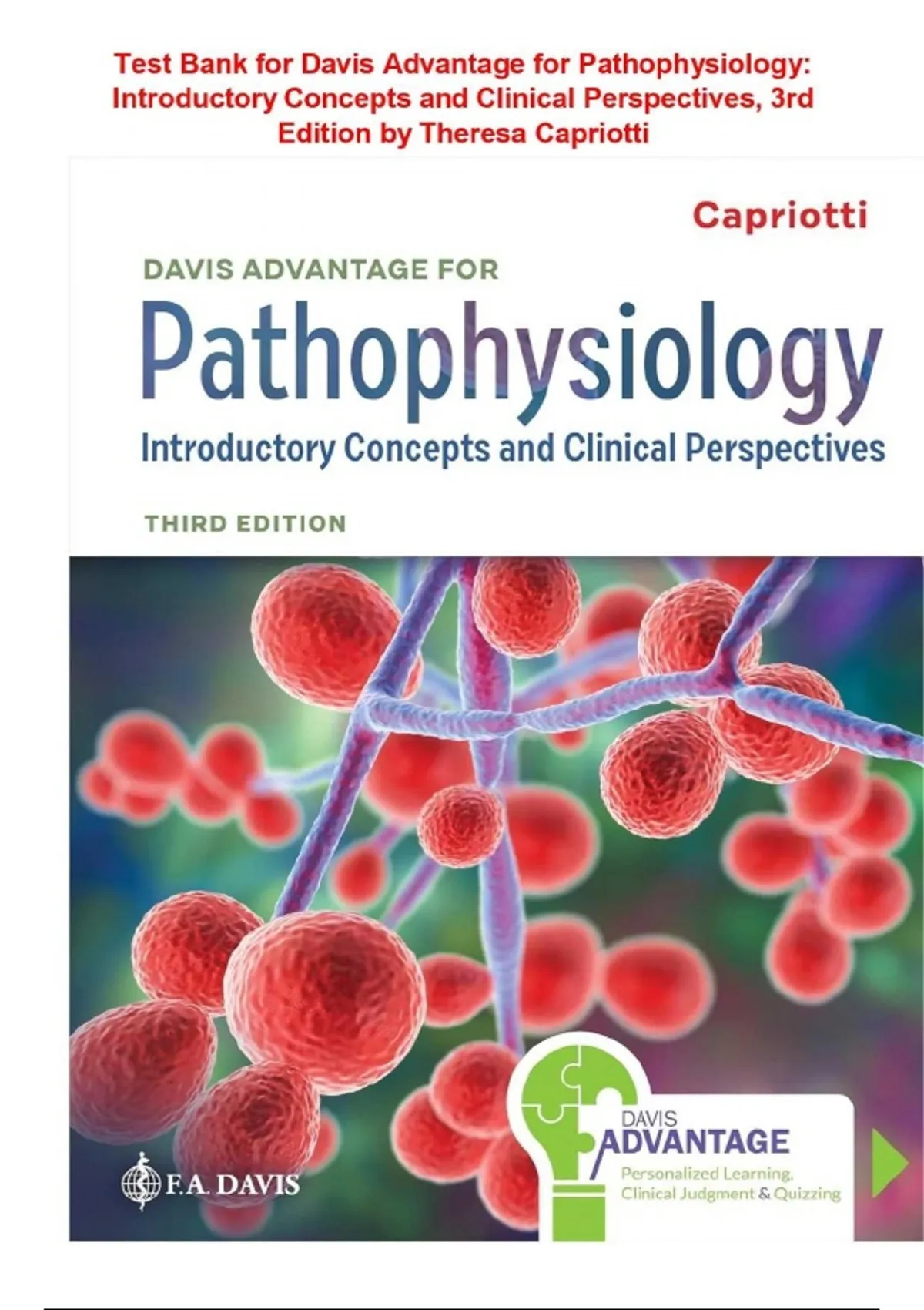 Test Bank for Davis Advantage for Pathophysiology: Introductory Concepts and Clinical Perspectives, 3rd Edition by Theresa Capriotti