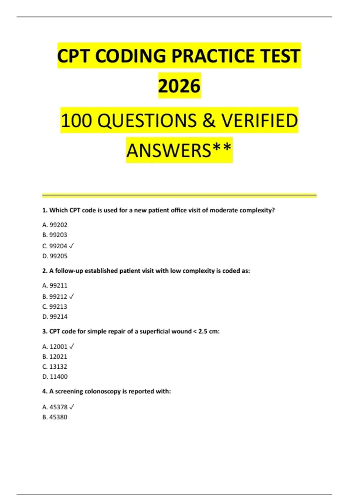 CPT CODING PRACTICE TEST 2026 FULL VERIFIED SOLUTIONS