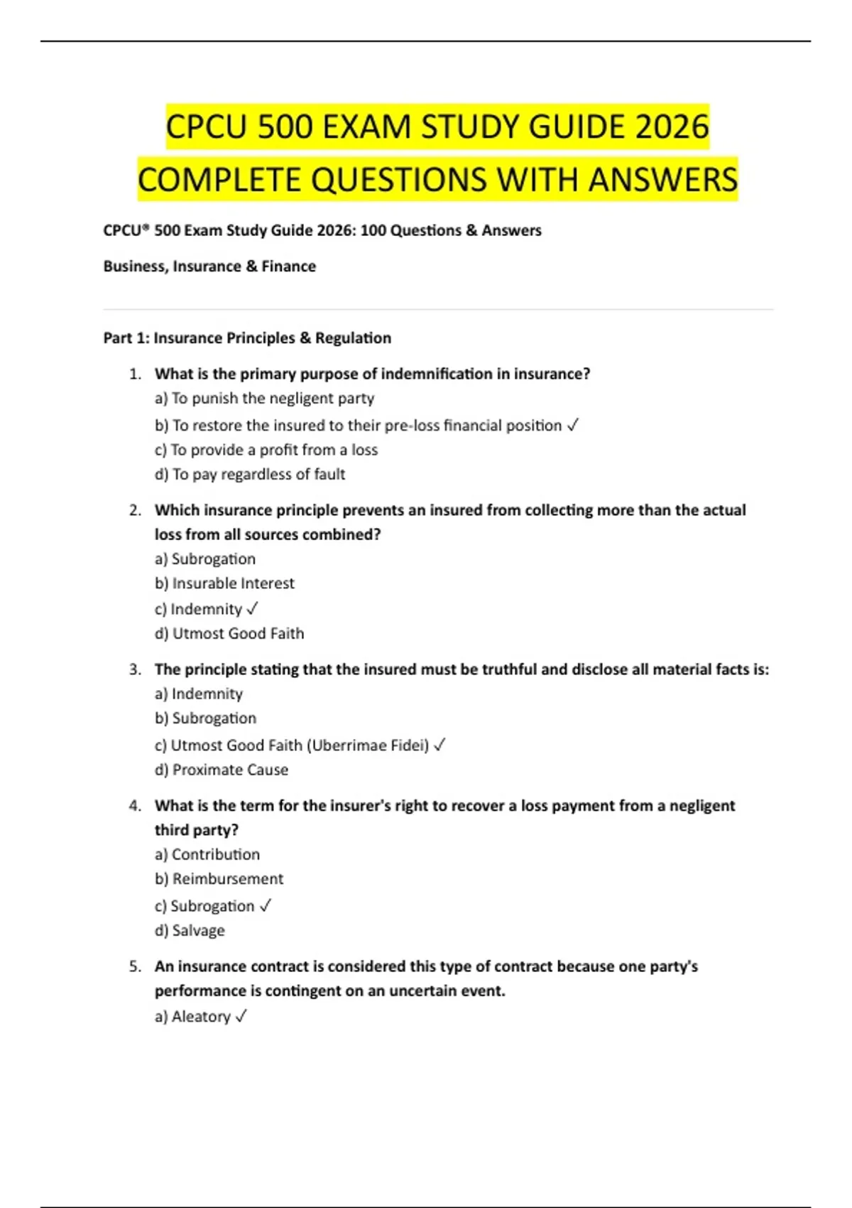 CPCU 500 EXAM STUDY GUIDE 2026 COMPLETE QUESTIONS WITH ANSWERS