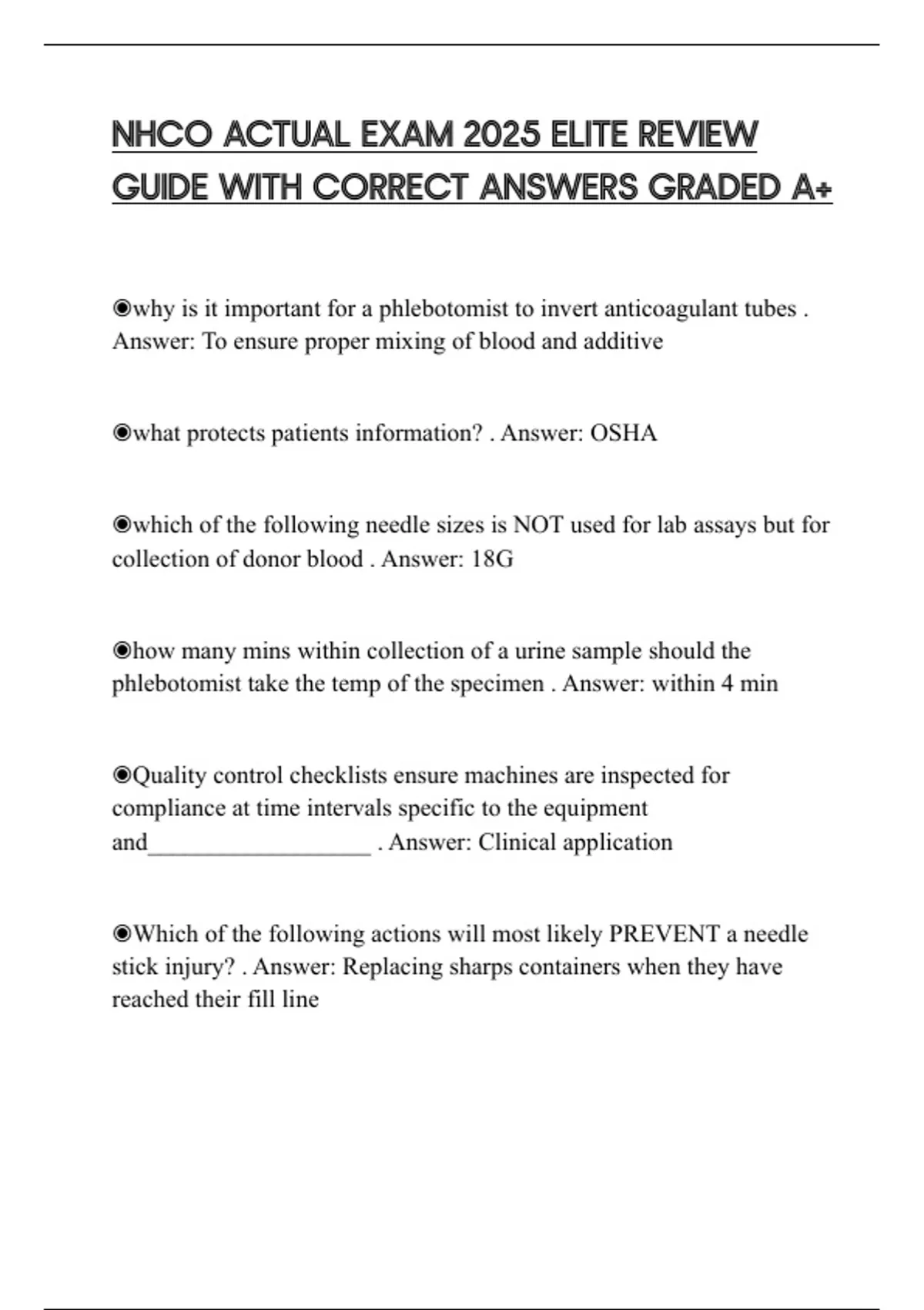 GUIDE WITH CORRECT ANSWERS GRADED A+