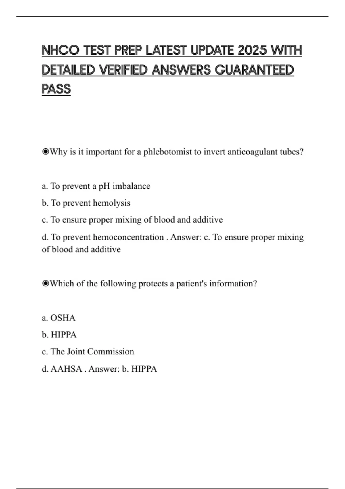 d. To prevent hemoconcentration . Answer: c. To ensure proper mixing