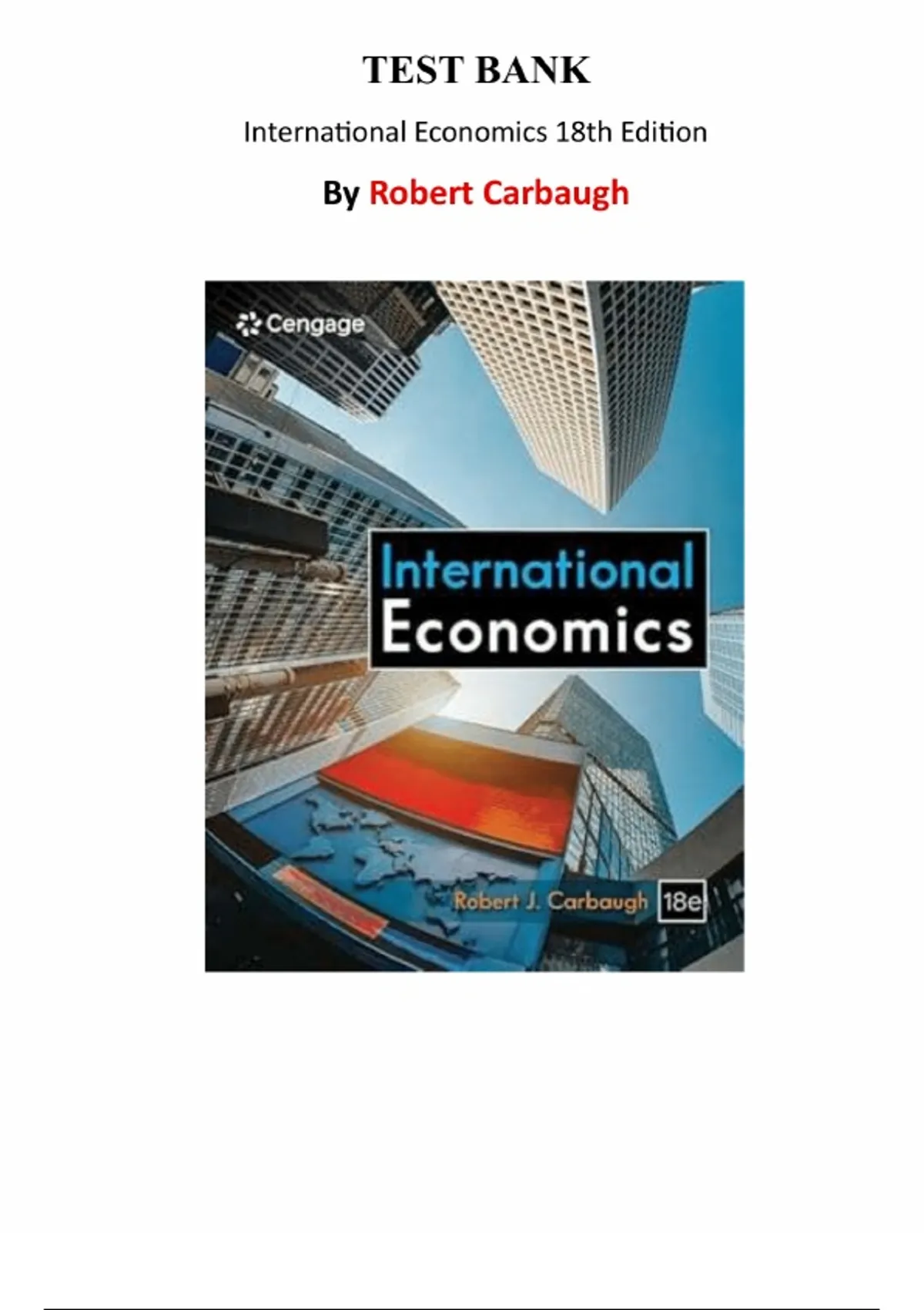 Test Bank - International Economics 18th Edition, by Robert Carbaugh, All Chapters
