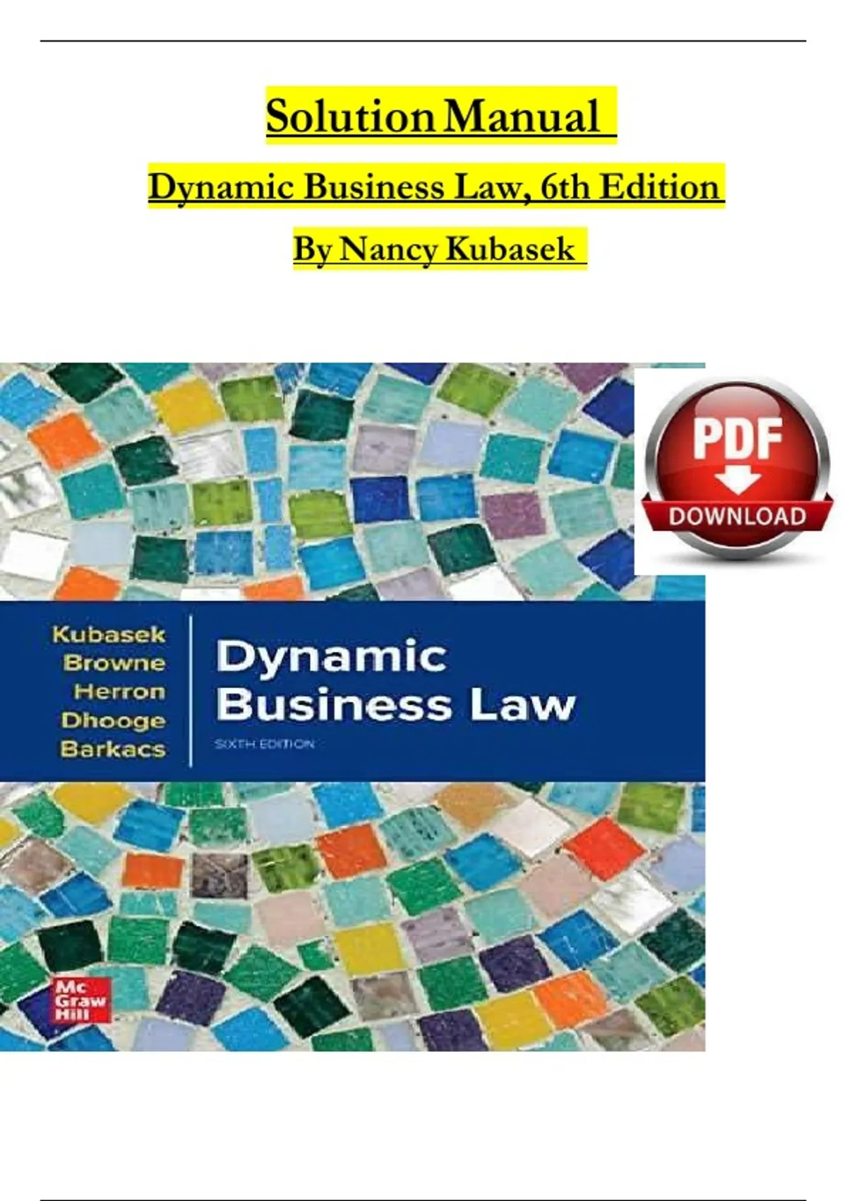 Complete solution manual for all chapters of Dynamic Business Law. Includes solved case studies, exercises, and chapter problems, helping business students master legal concepts and apply them to real-world scenarios.