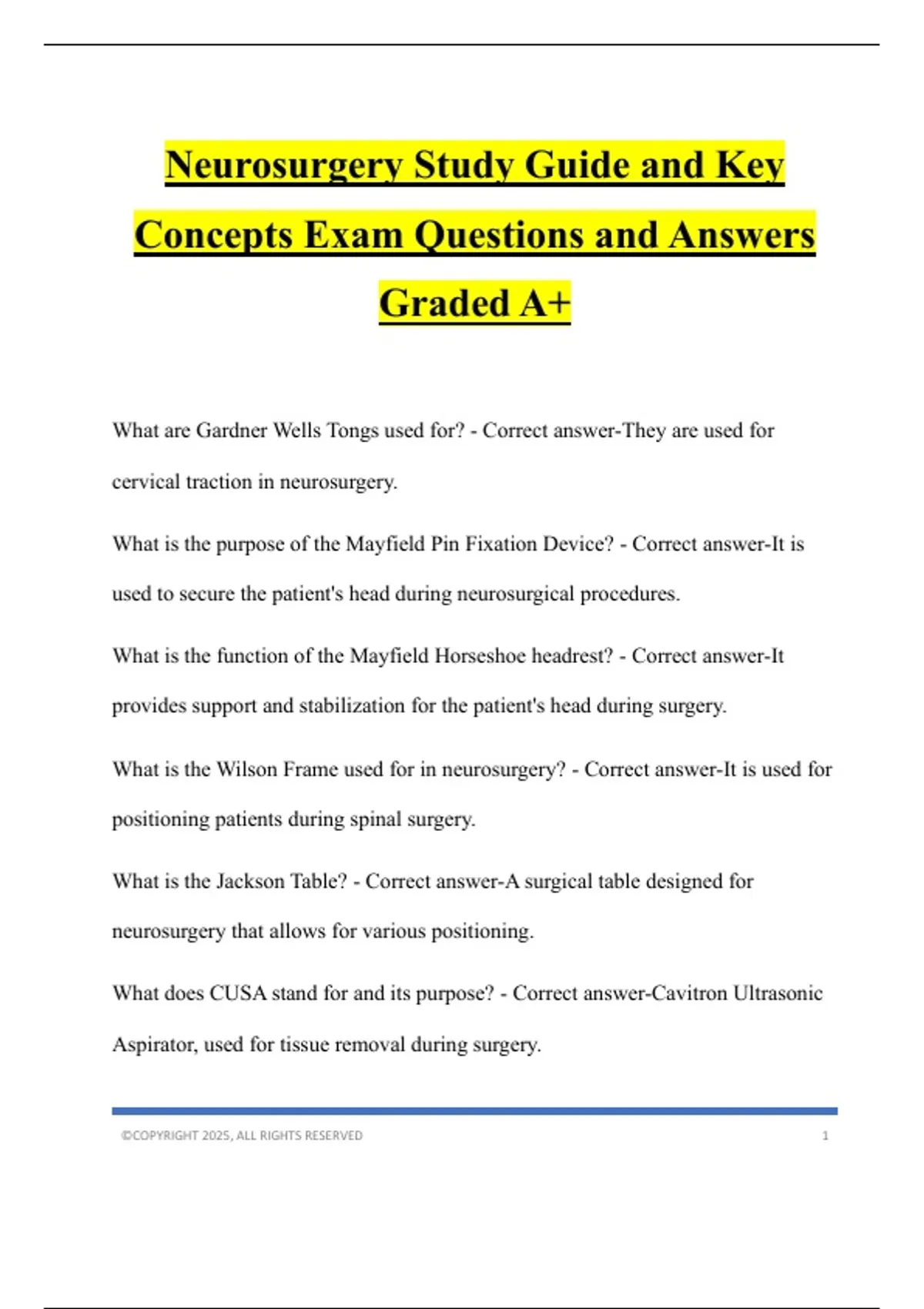 Neurosurgery Study Guide and Key