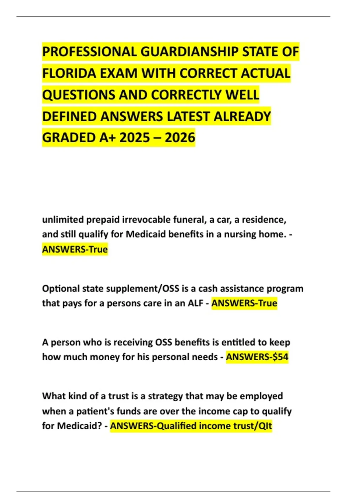 FLORIDA EXAM WITH CORRECT ACTUAL