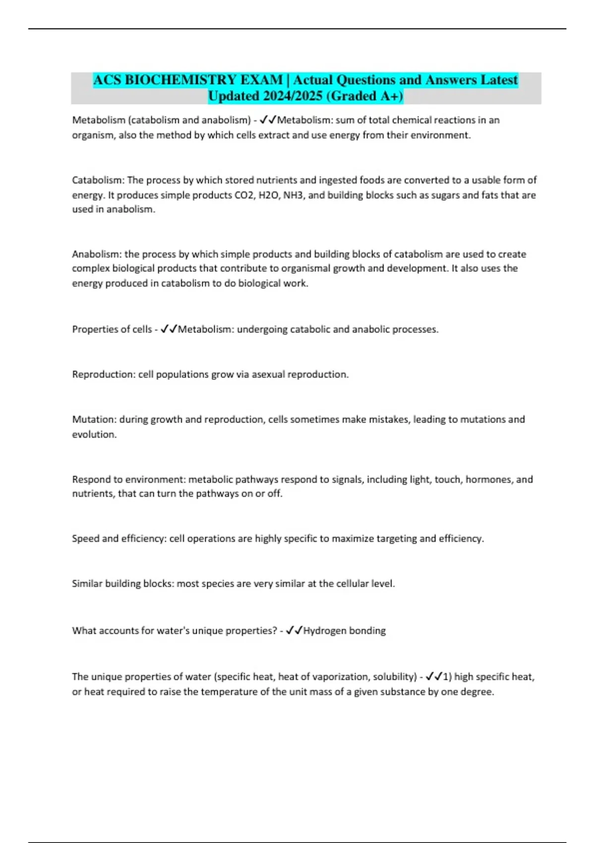 Metabolism (catabolism and anabolism) - ✔✔Metabolism: sum of total chemical reactions in an