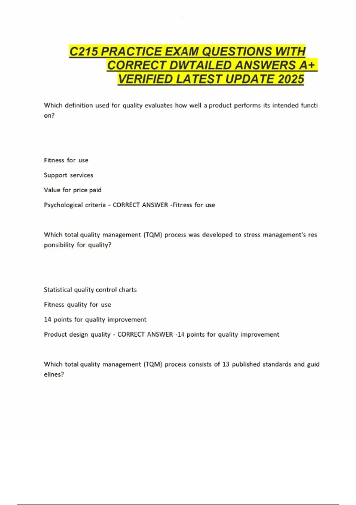c215 practice exam questions with correct dwtailed