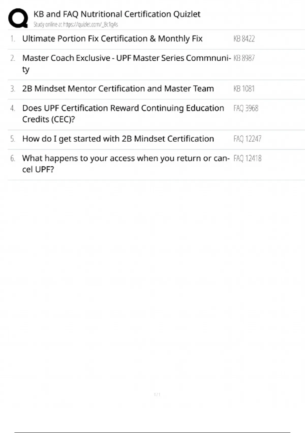 Nutritional Certification KB & FAQ / Quizlet Study Guide / 2025 Update / Score 100%