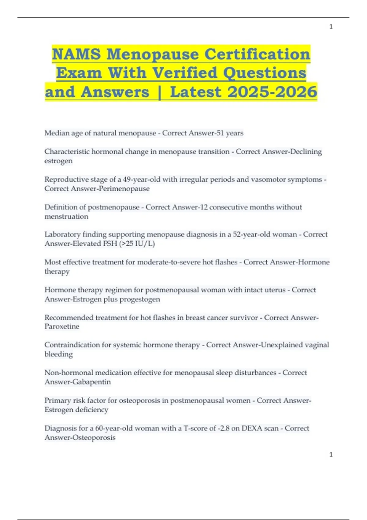 Correct Answer-Perimenopause