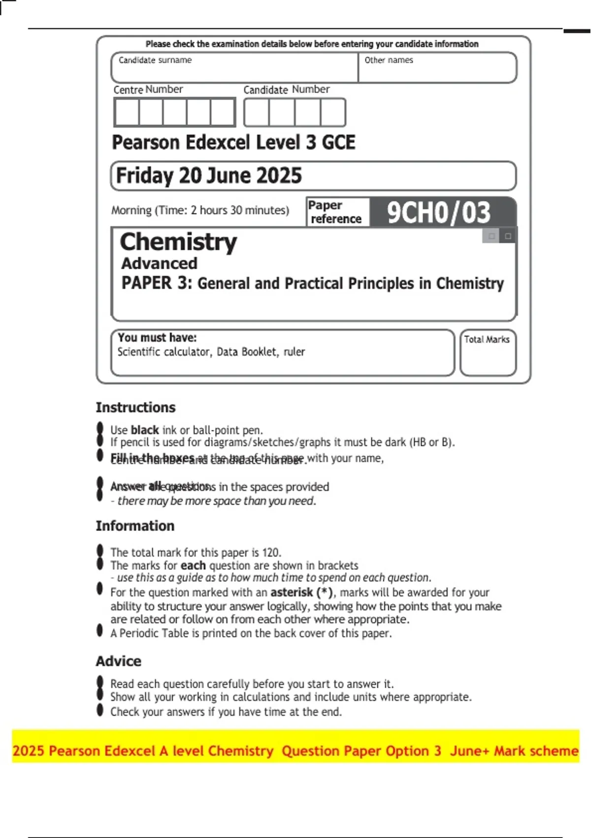 PAPER 3: General and Practical Principles in Chemistry