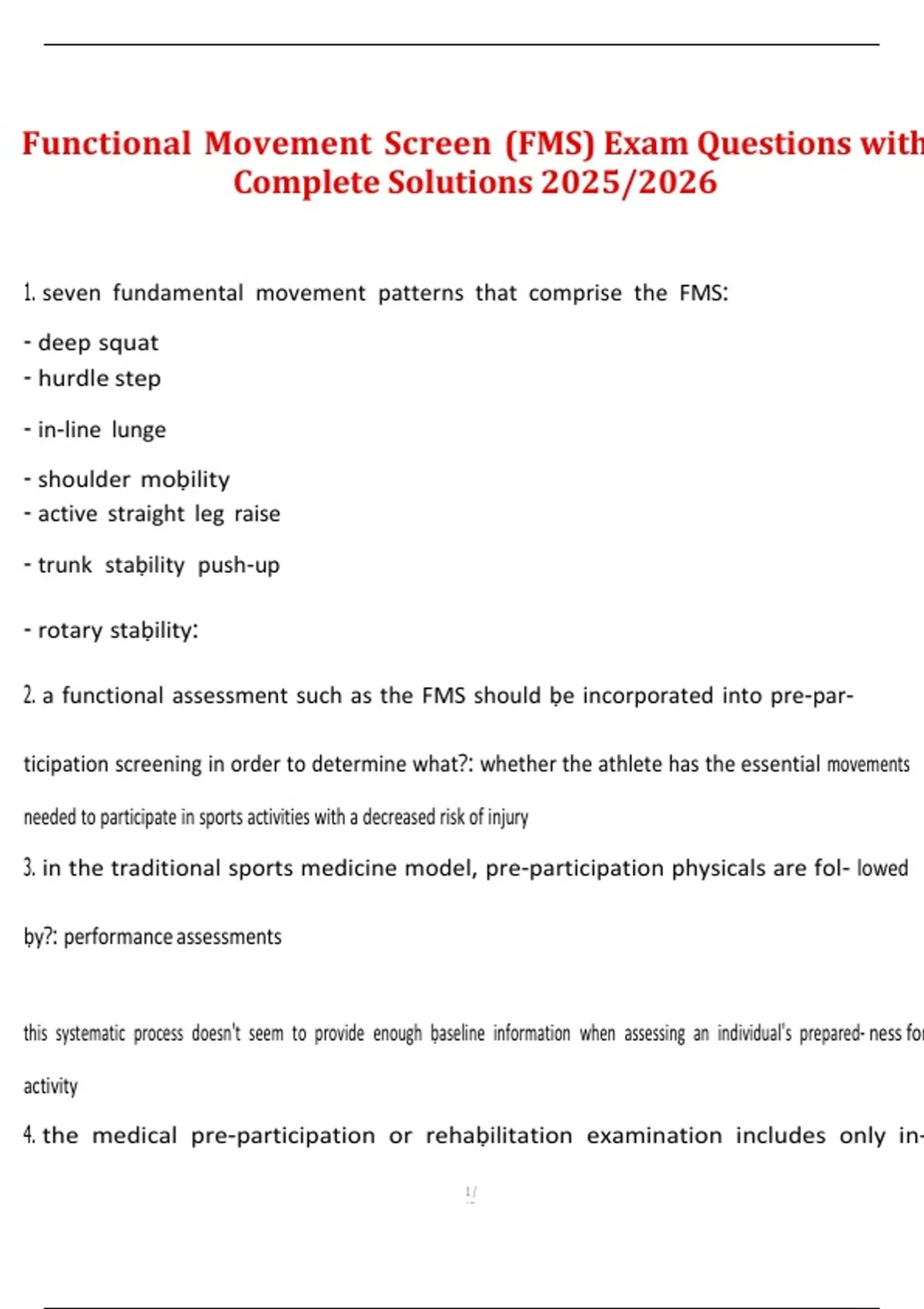 2. a functional assessment such as the FMS should ḅe incorporated into pre-par-