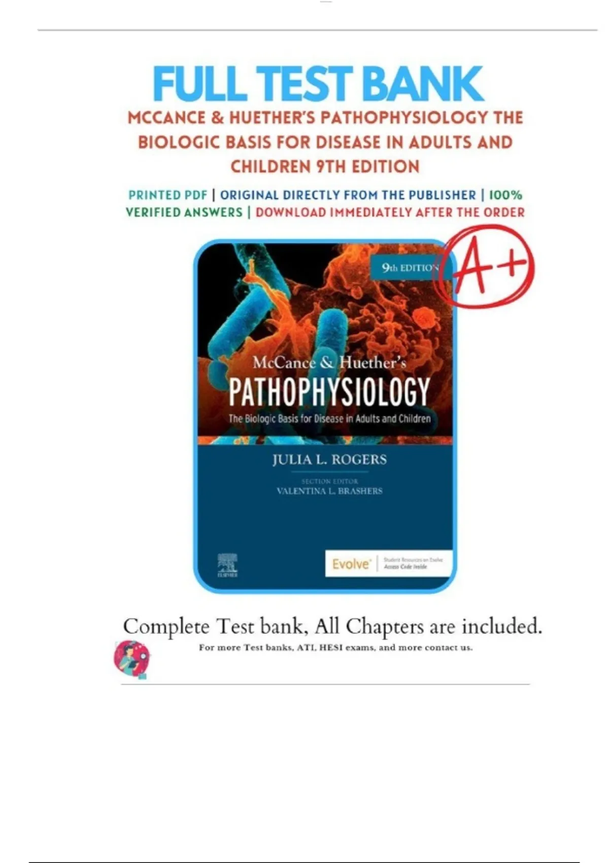 FULL TEST BANK FOR MCCANCE AND HUETHERS PATHOPHYSIOLOGY THE BIOLOGIC BASIS FOR DISEASE IN ADULTS AND CHILDREN 9TH EDITION 2024/2025 [VERIFIED ANSWERS]
