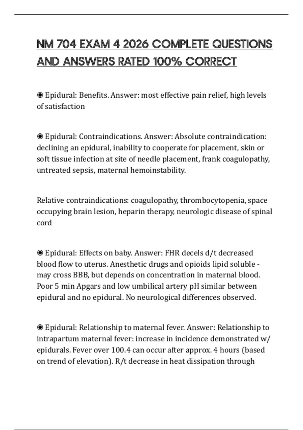 NM 704 EXAM 4 2026 COMPLETE QUESTIONS AND ANSWERS RATED 100% CORRECT