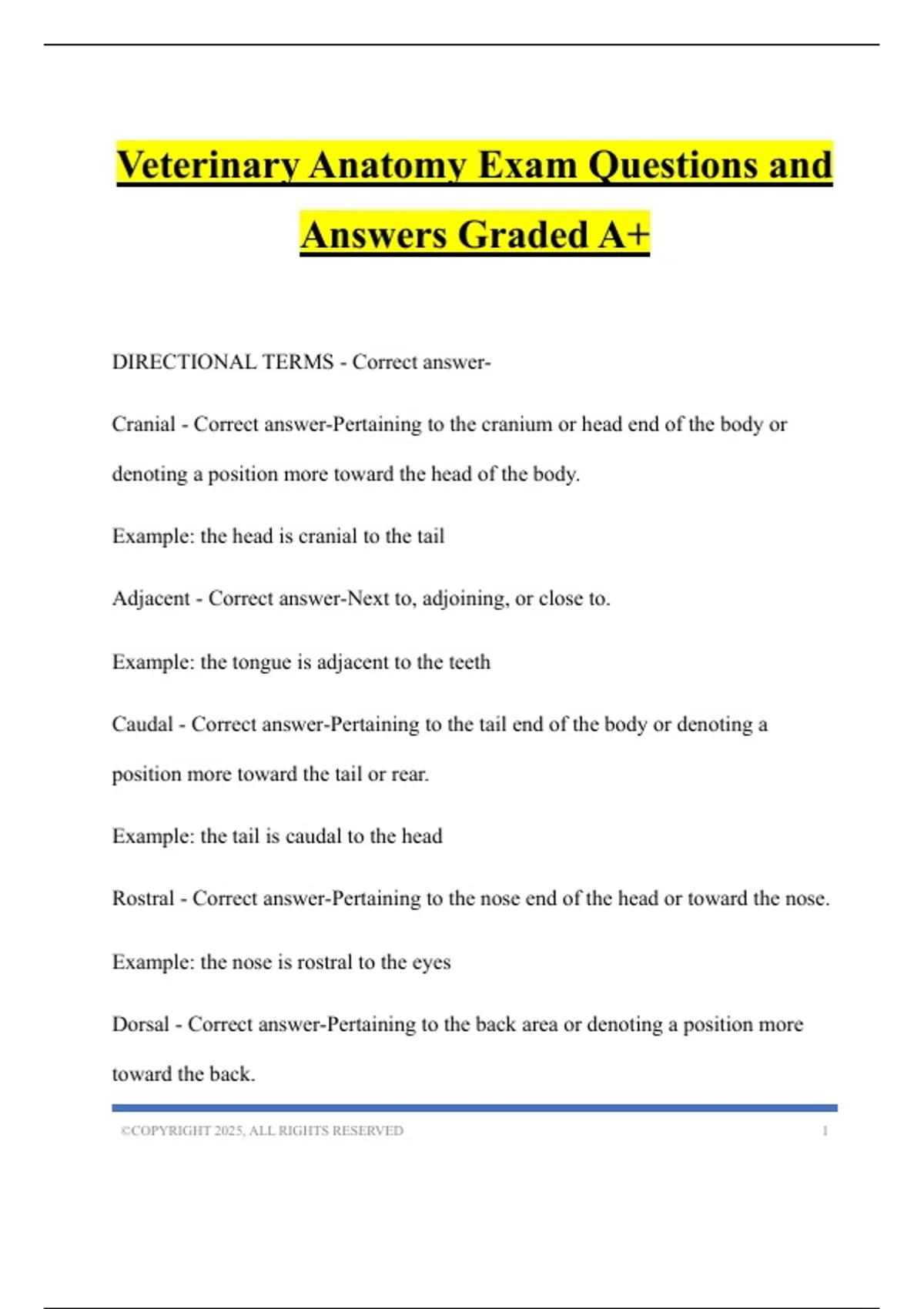 Veterinary Anatomy Exam Questions and Answers Graded A+