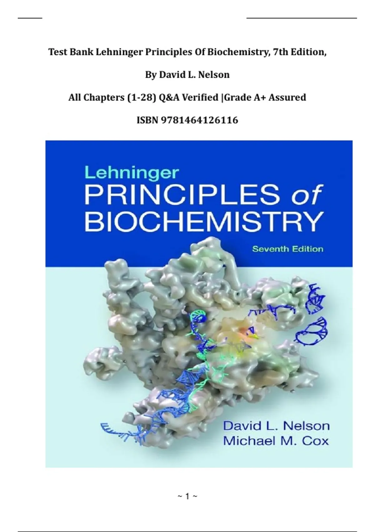 Lehninger Principles of Biochemistry (7th Edition, David L. Nelson) – Complete Test Bank Q&A for Chapters 1–28 – Verified Exam Preparation Material