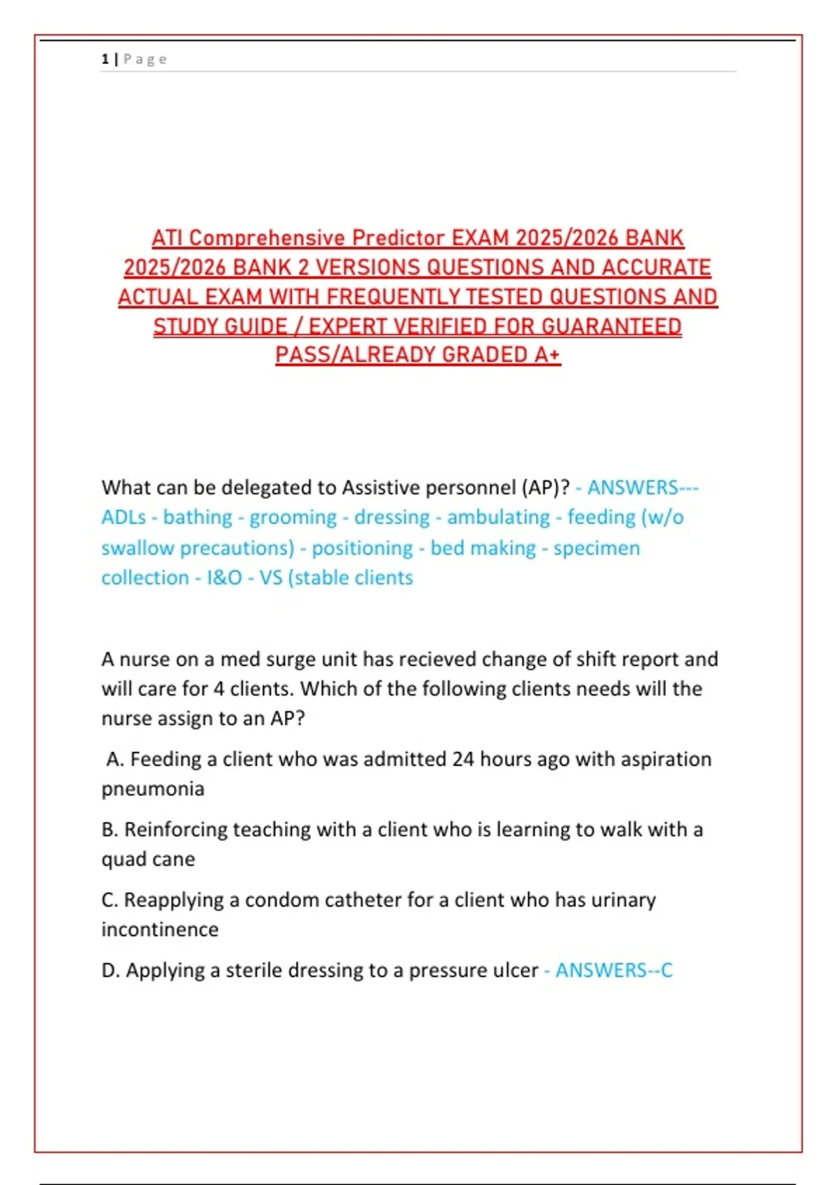 ATI Comprehensive Predictor EXAM 2025/2026 BANK