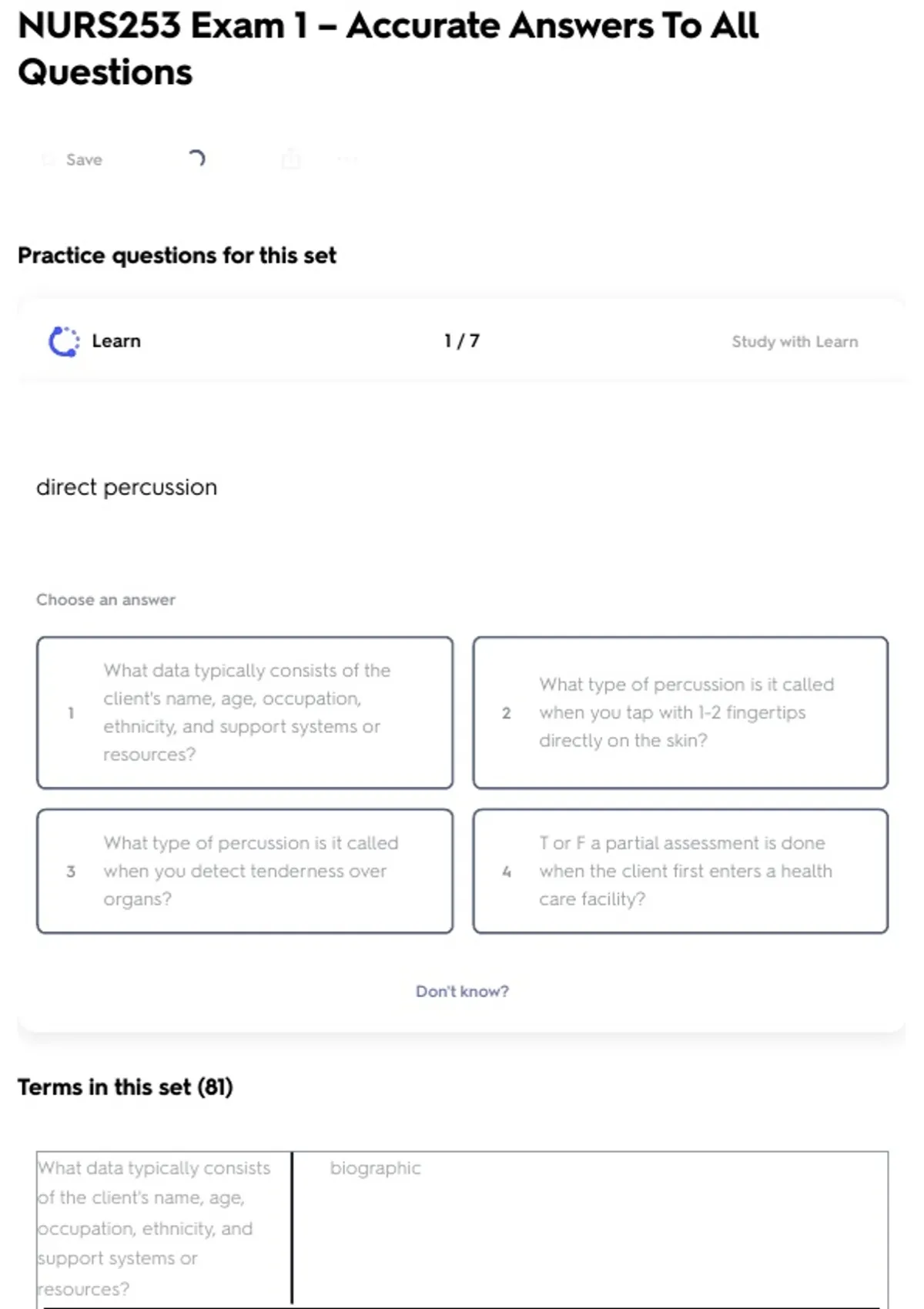 NURS253 Exam 1 – Accurate Answers To All Questions