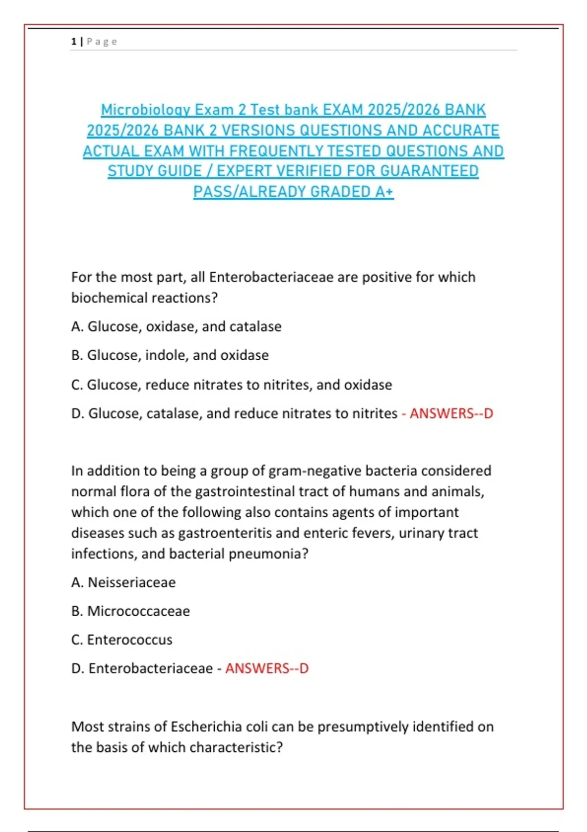 D. Enterobacteriaceae - ANSWERS--D