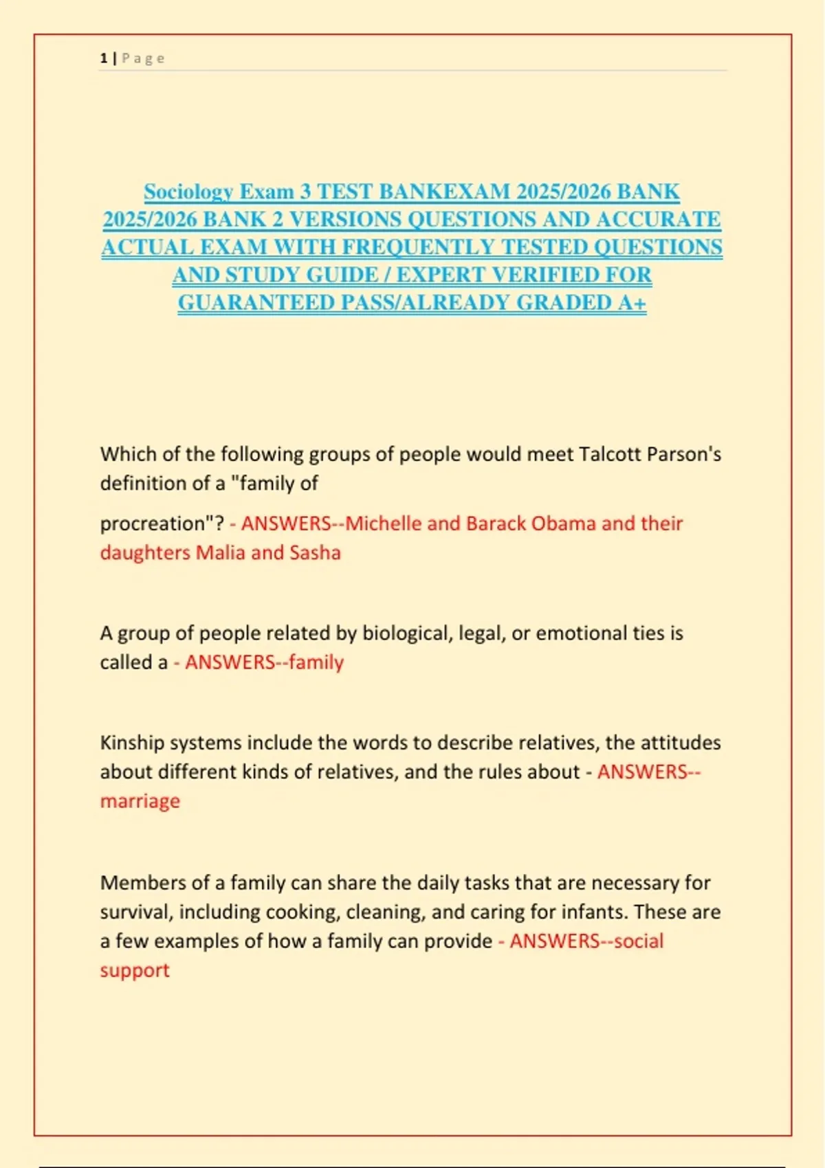 Sociology Exam 3 TEST BANKEXAM 2025/2026 BANK