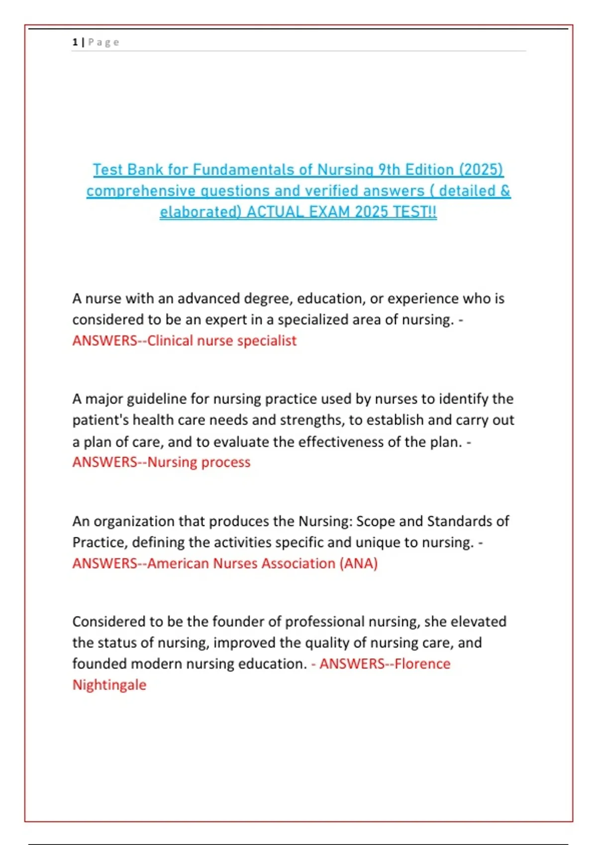 ANSWERS--American Nurses Association (ANA)