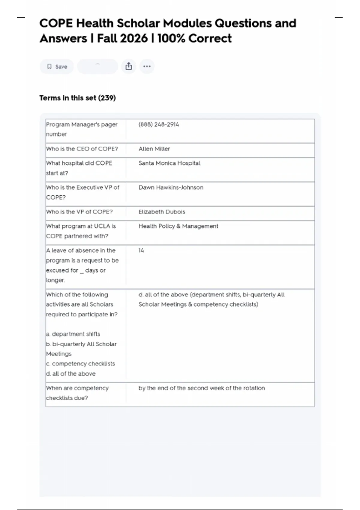 COPE Health Scholar Modules Questions and Answers | Fall 2026 | 100% Correct