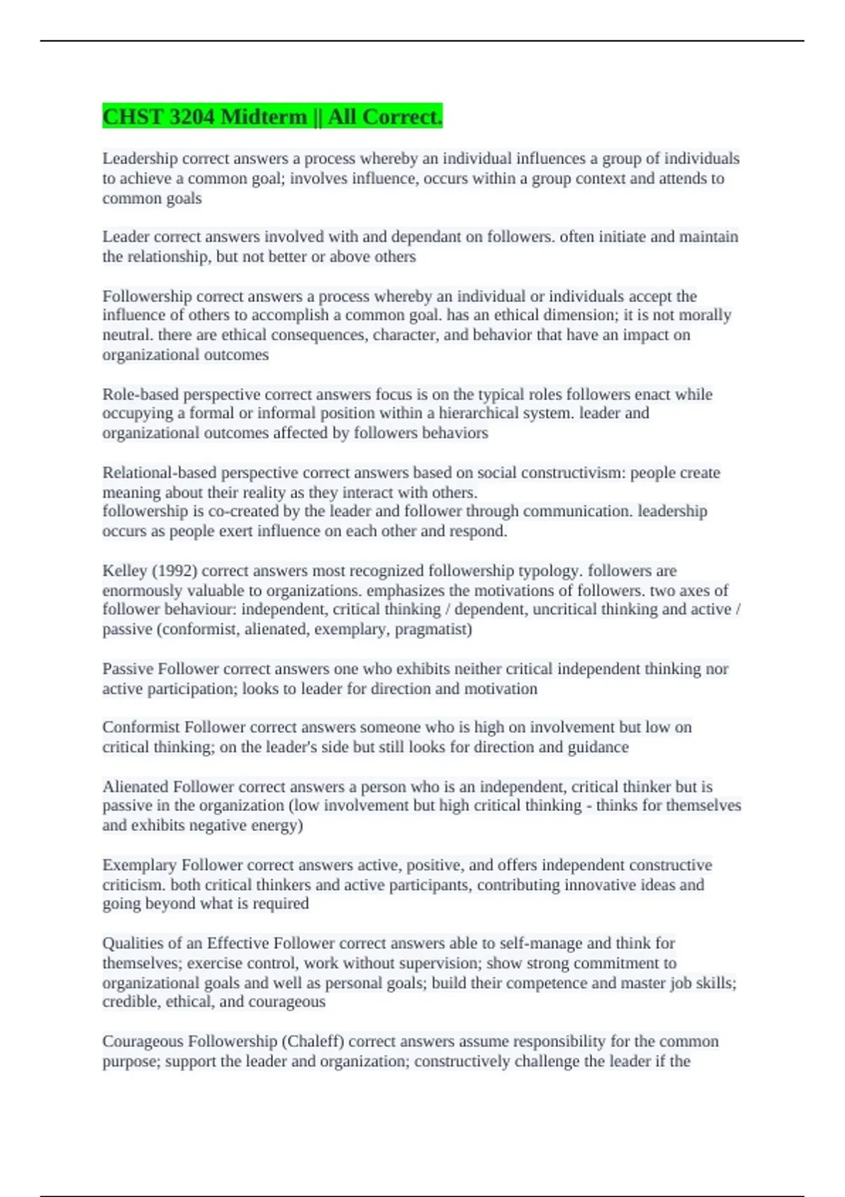 How Followership Works correct answers discussing followership elevates its importance