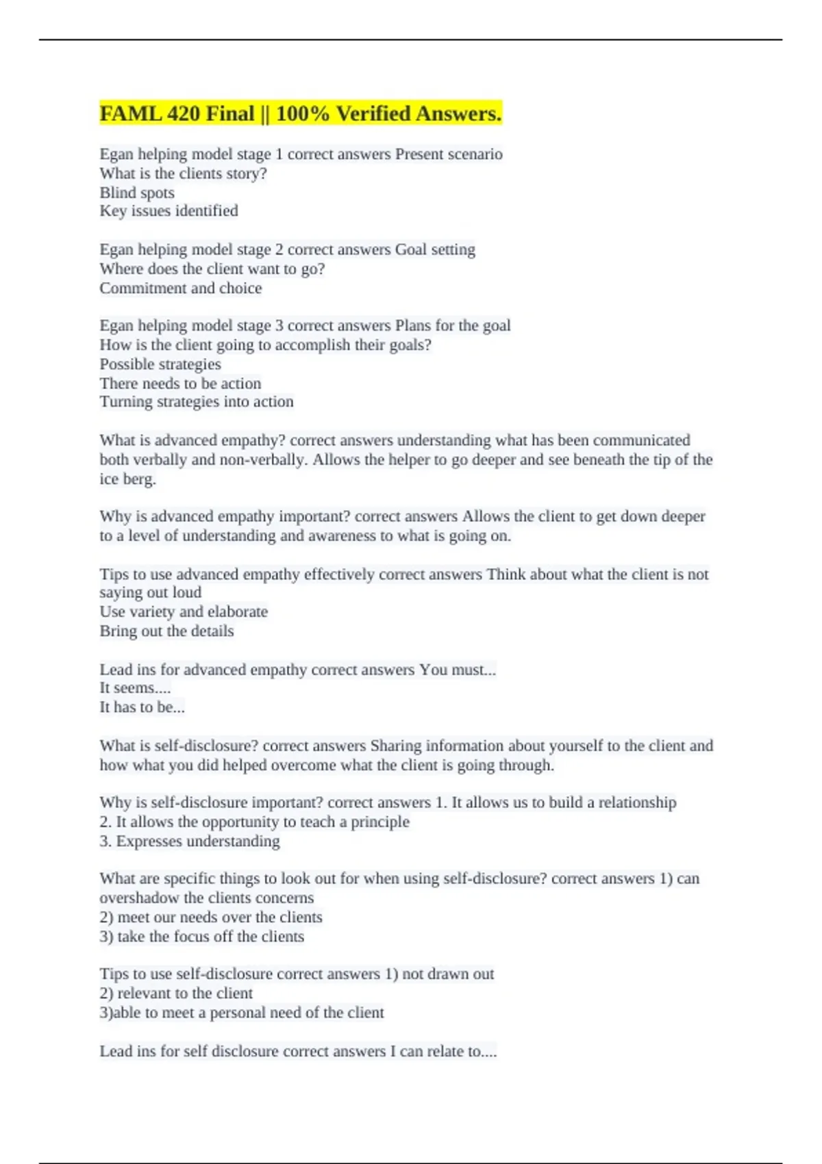 Egan helping model stage 1 correct answers Present scenario