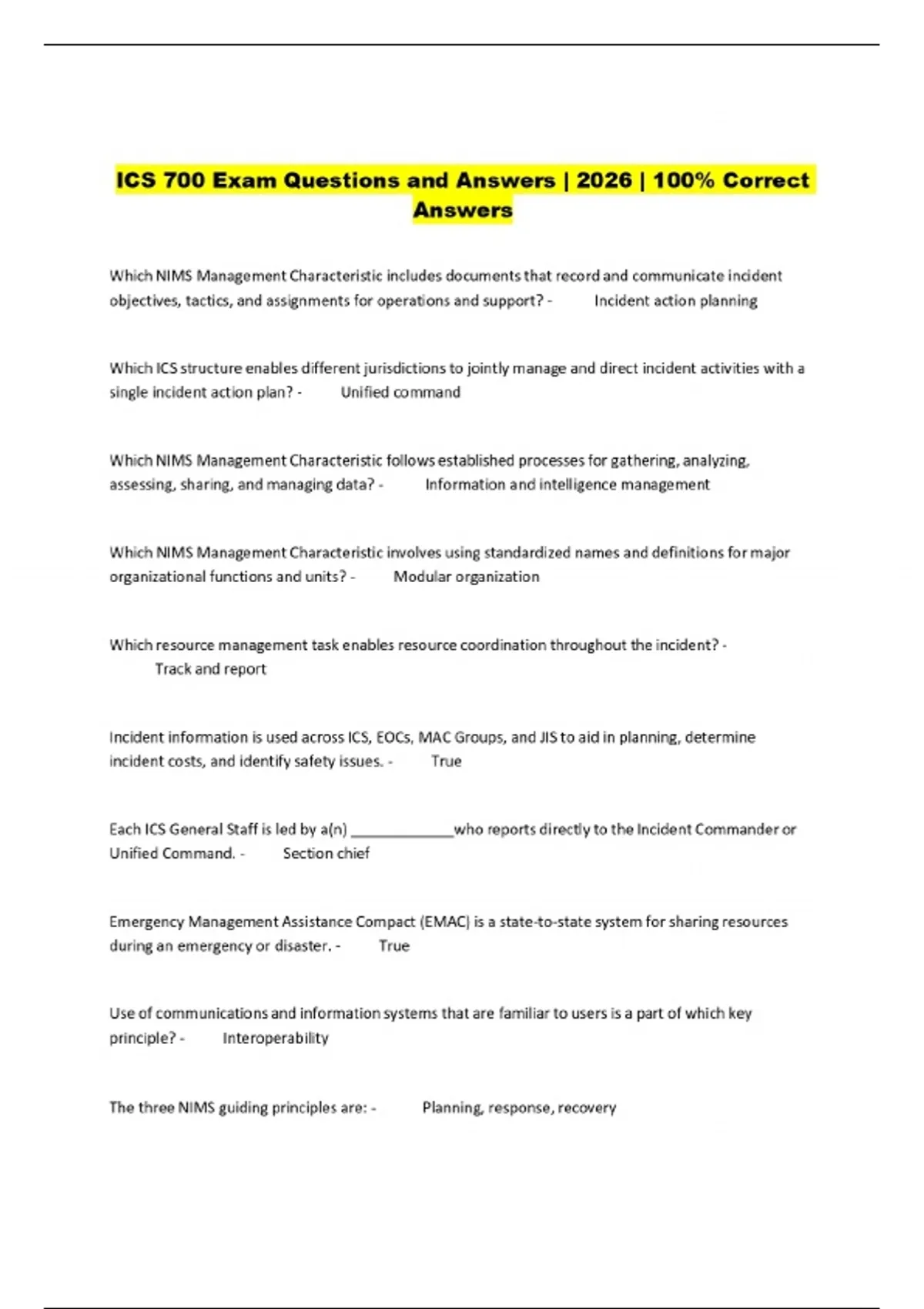 ICS 700 Exam Questions and Answers | 2026 | 100% Correct Answers