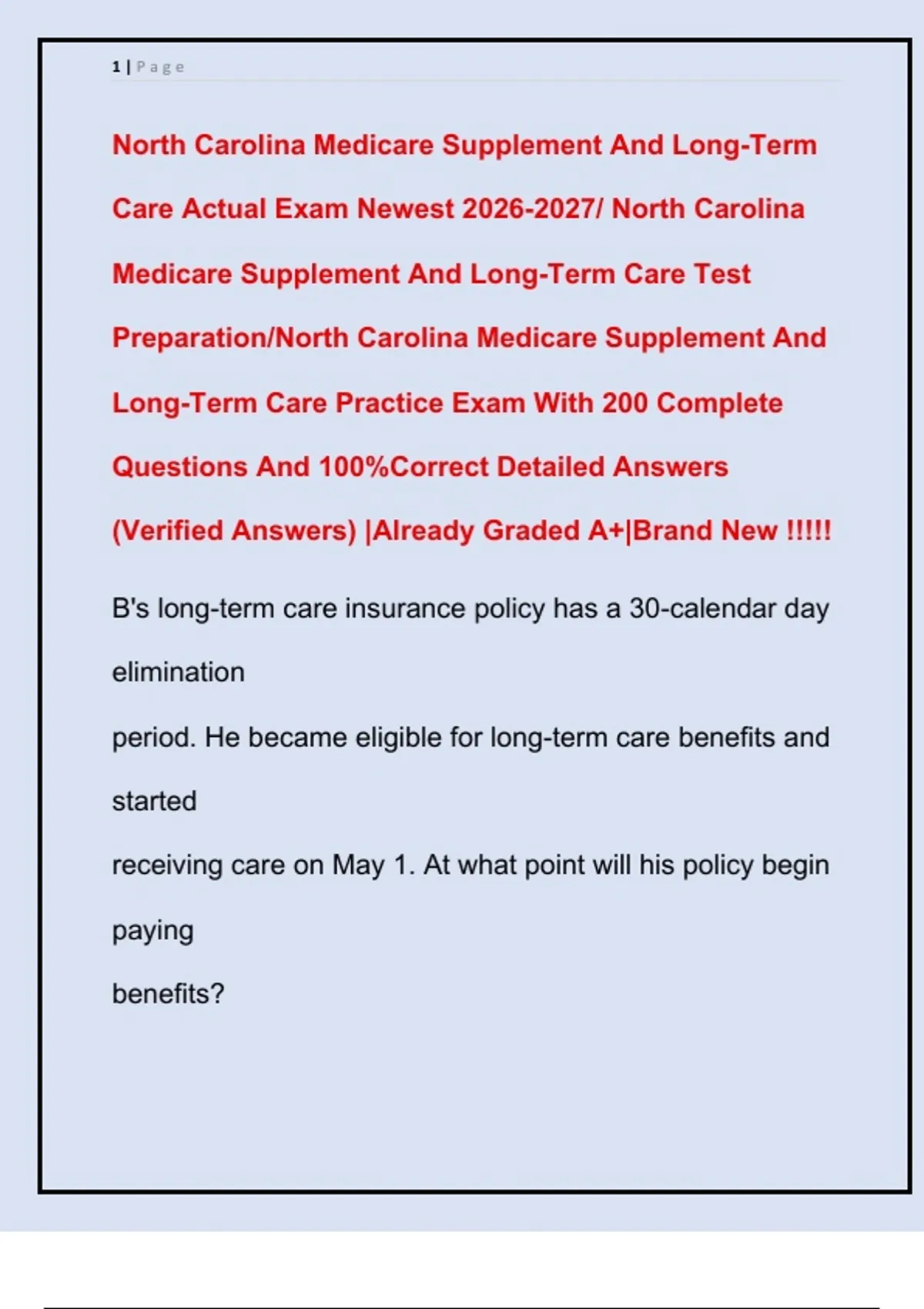 Care Actual Exam Newest 2026-2027/ North Carolina