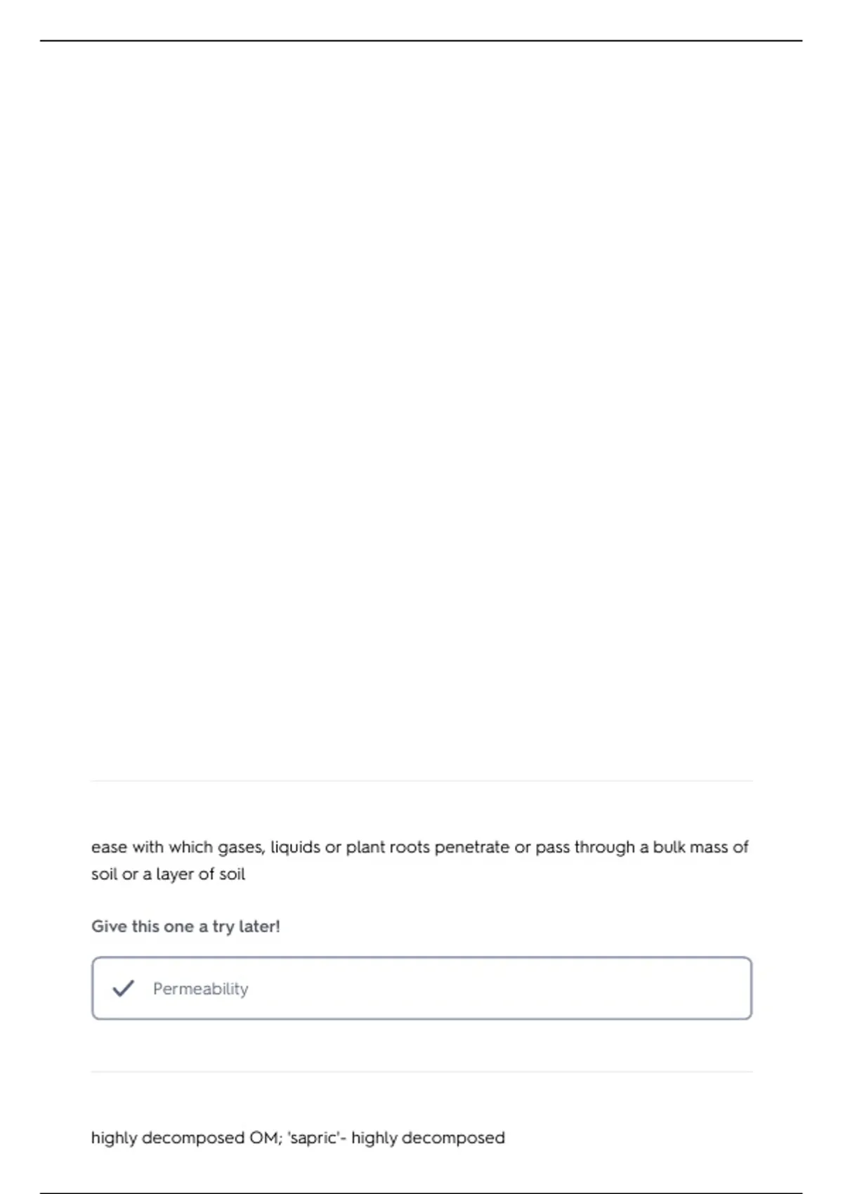 highly decomposed OM; 'sapric'- highly decomposed
