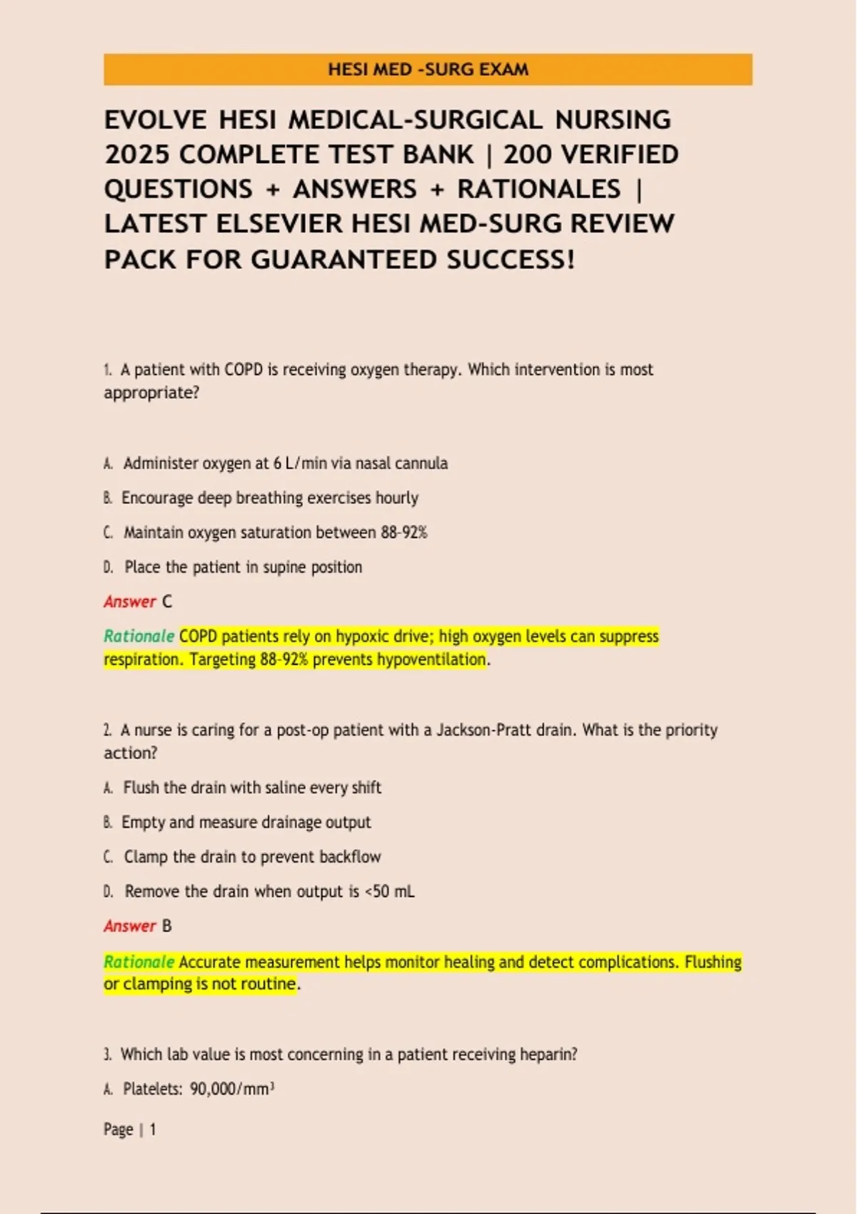 LATEST ELSEVIER HESI MED-SURG REVIEW