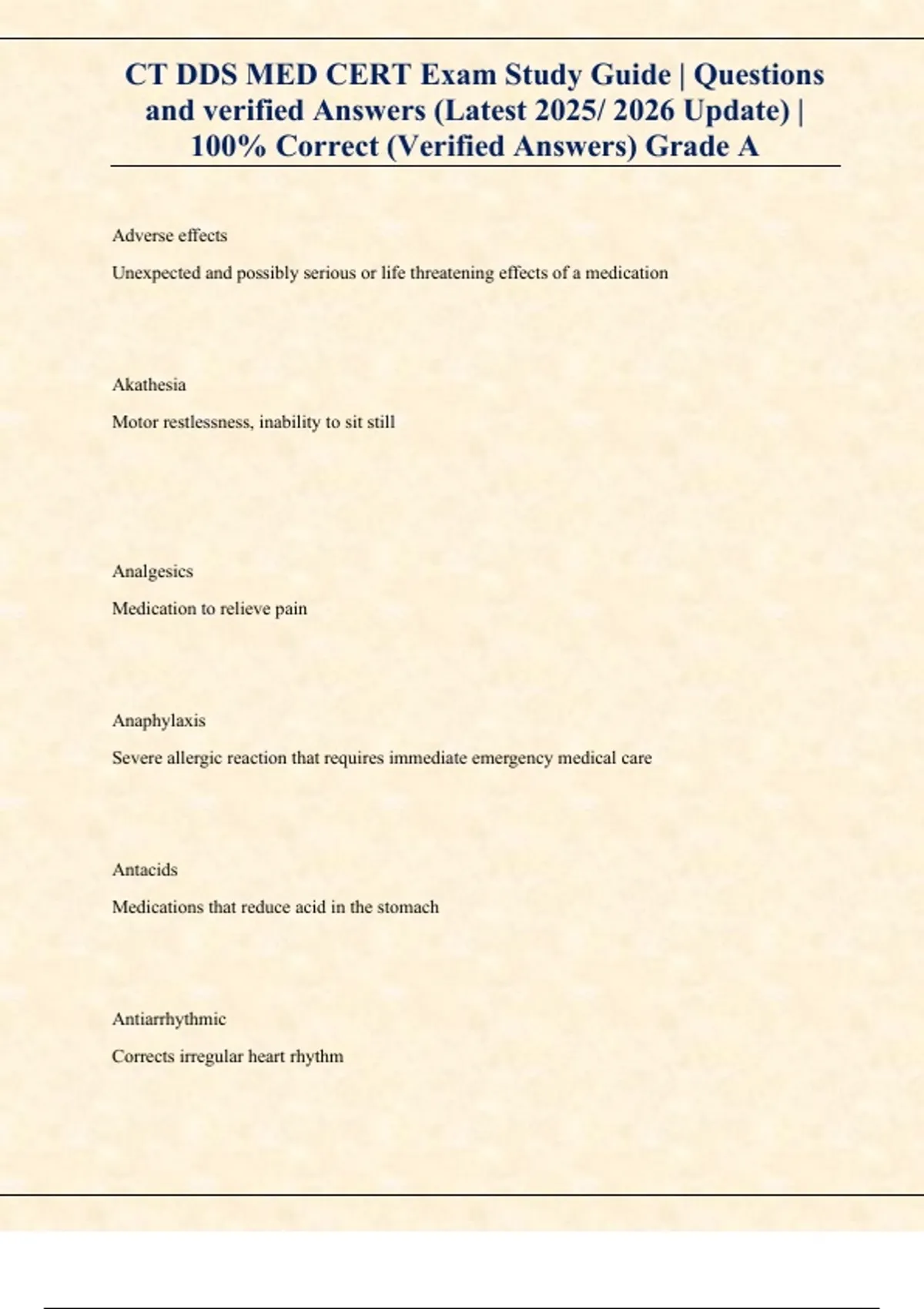 CT DDS MED CERT Exam Study Guide | Questions