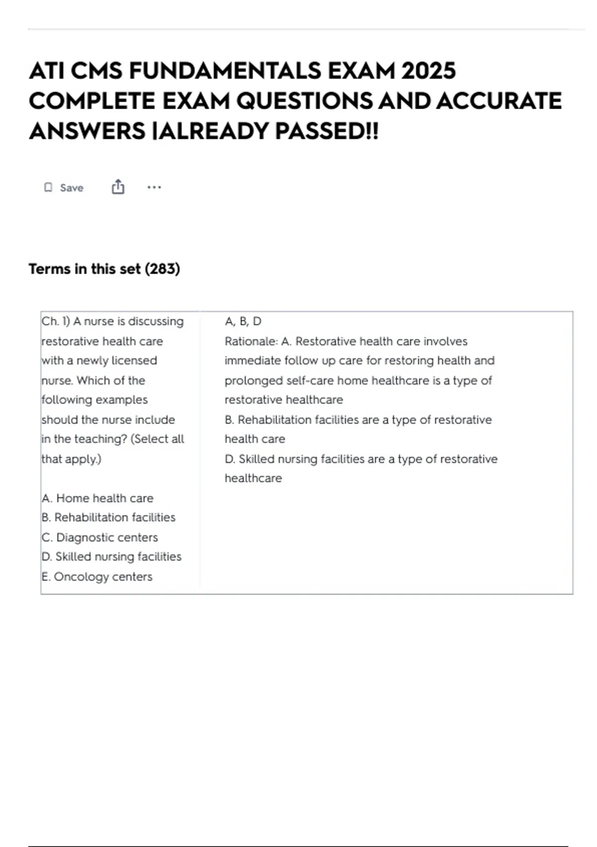 that apply.) D. Skilled nursing facilities are a type of restorative