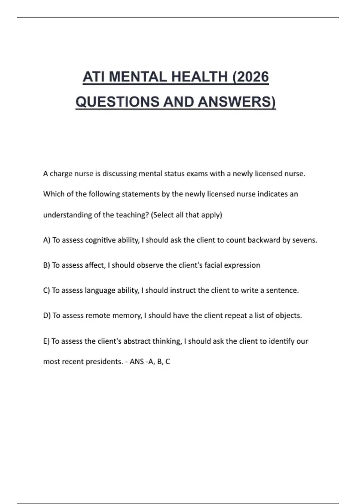 A charge nurse is discussing mental status exams with a newly licensed nurse.
