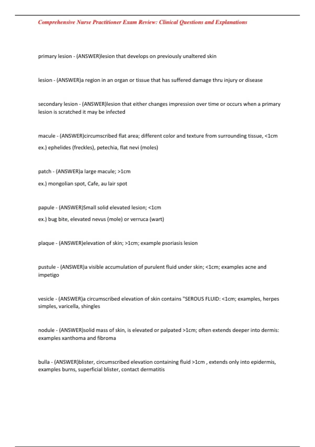 papule - (ANSWER)Small solid elevated lesion; <1cm