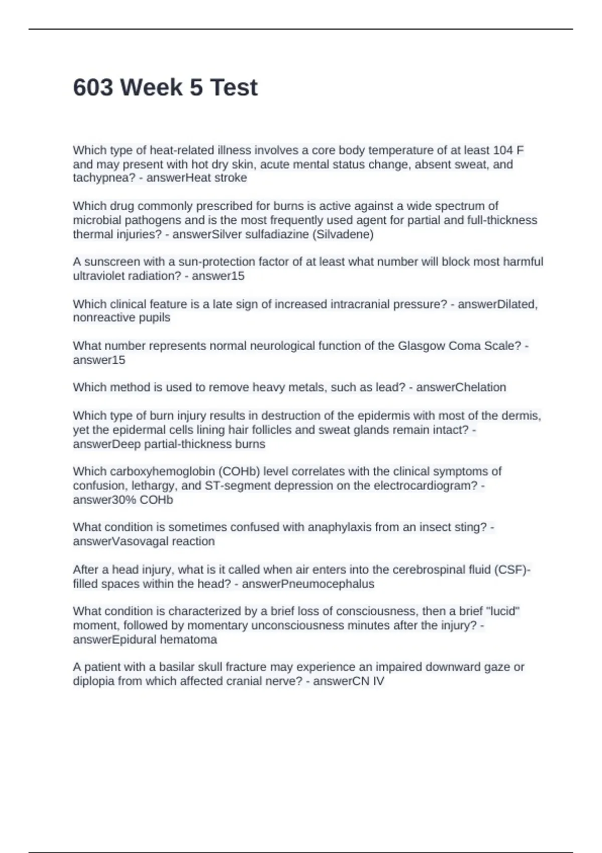 603 Week 5 Test Questions and Answers