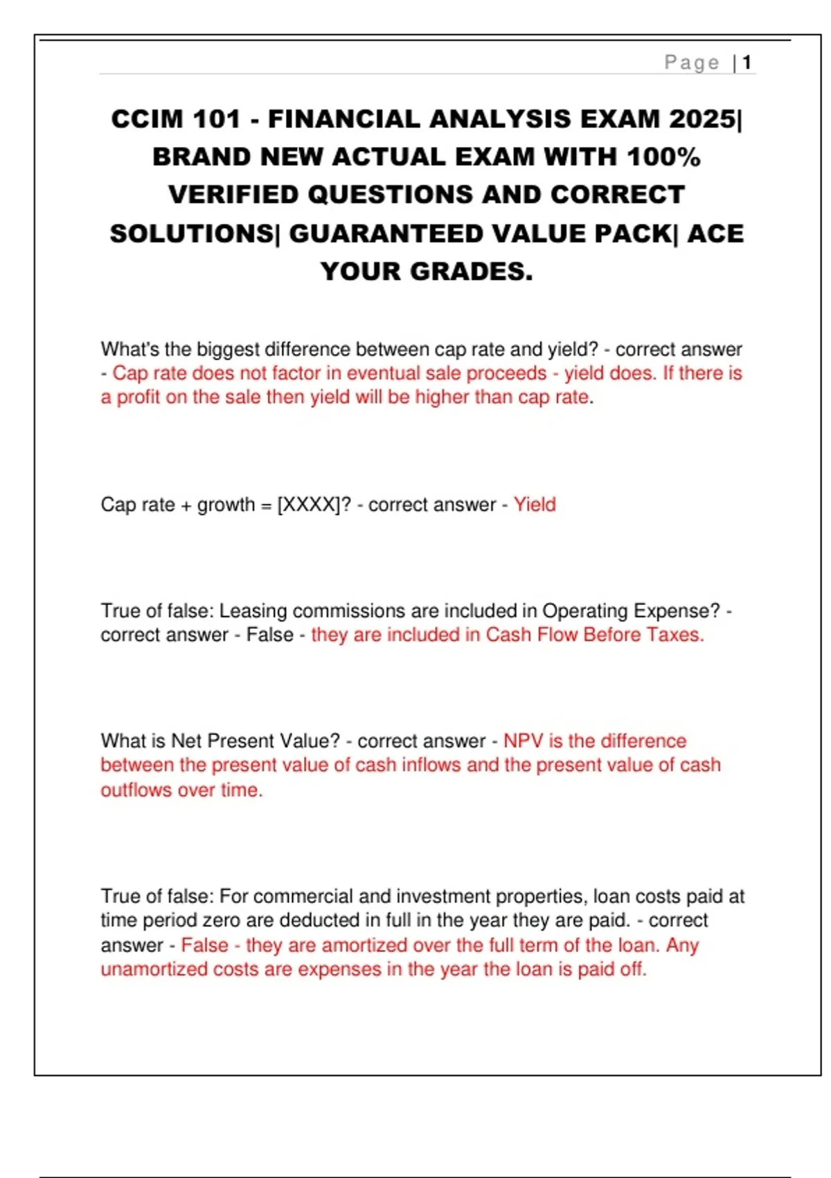 CCIM 101 - FINANCIAL ANALYSIS EXAM 2025|