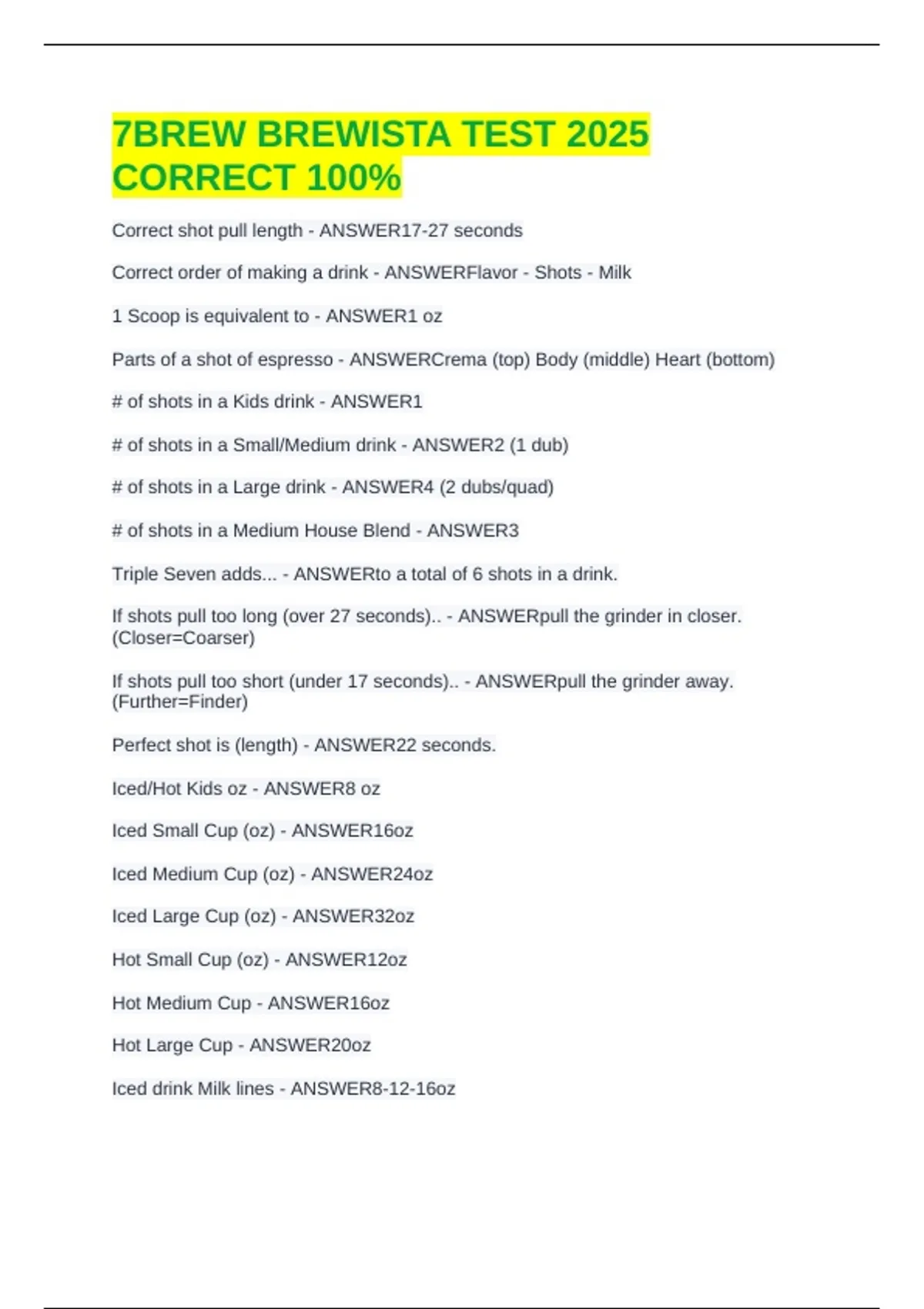 7BREW BREWISTA TEST 2025 CORRECT 100%