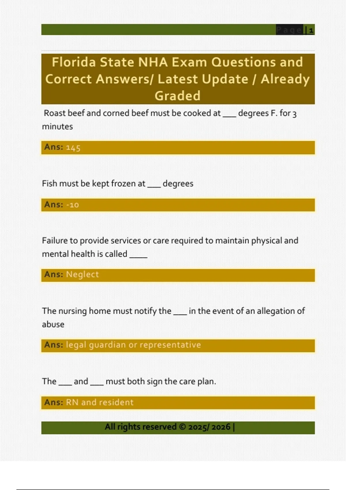 Florida State NHA Exam Questions and Correct Answers/ Latest Update / Already Graded