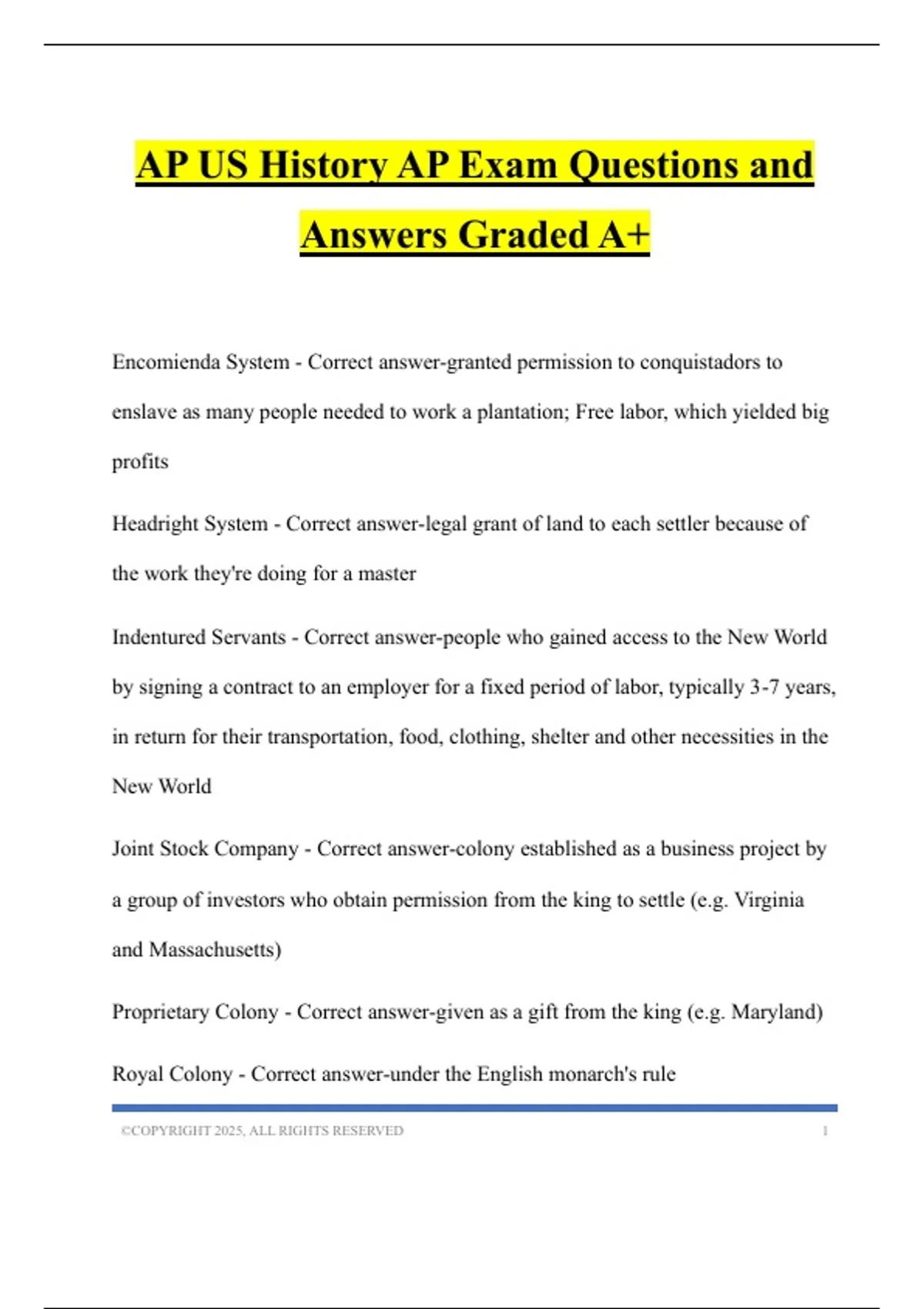 Indentured Servants - Correct answer-people who gained access to the New World