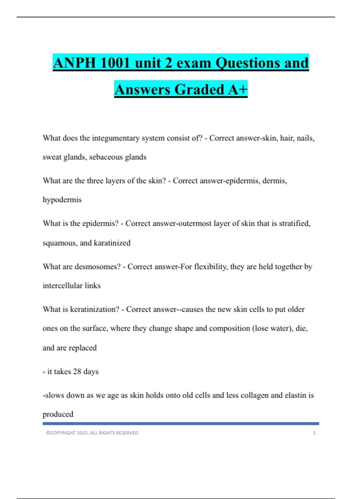 ANPH 1001 unit 2 exam Questions and Answers Graded A+