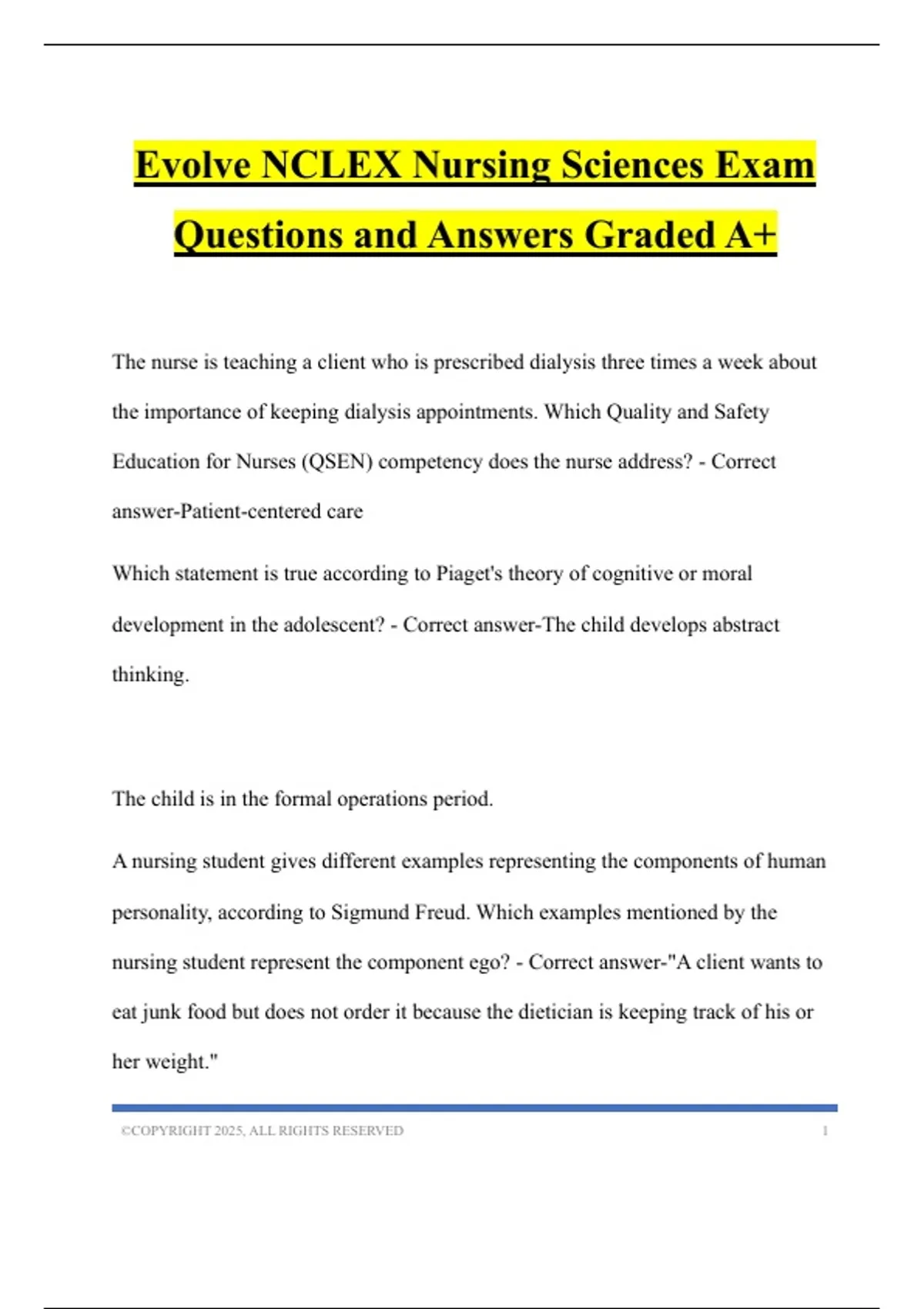 Evolve NCLEX Nursing Sciences Exam Questions and Answers Graded A+