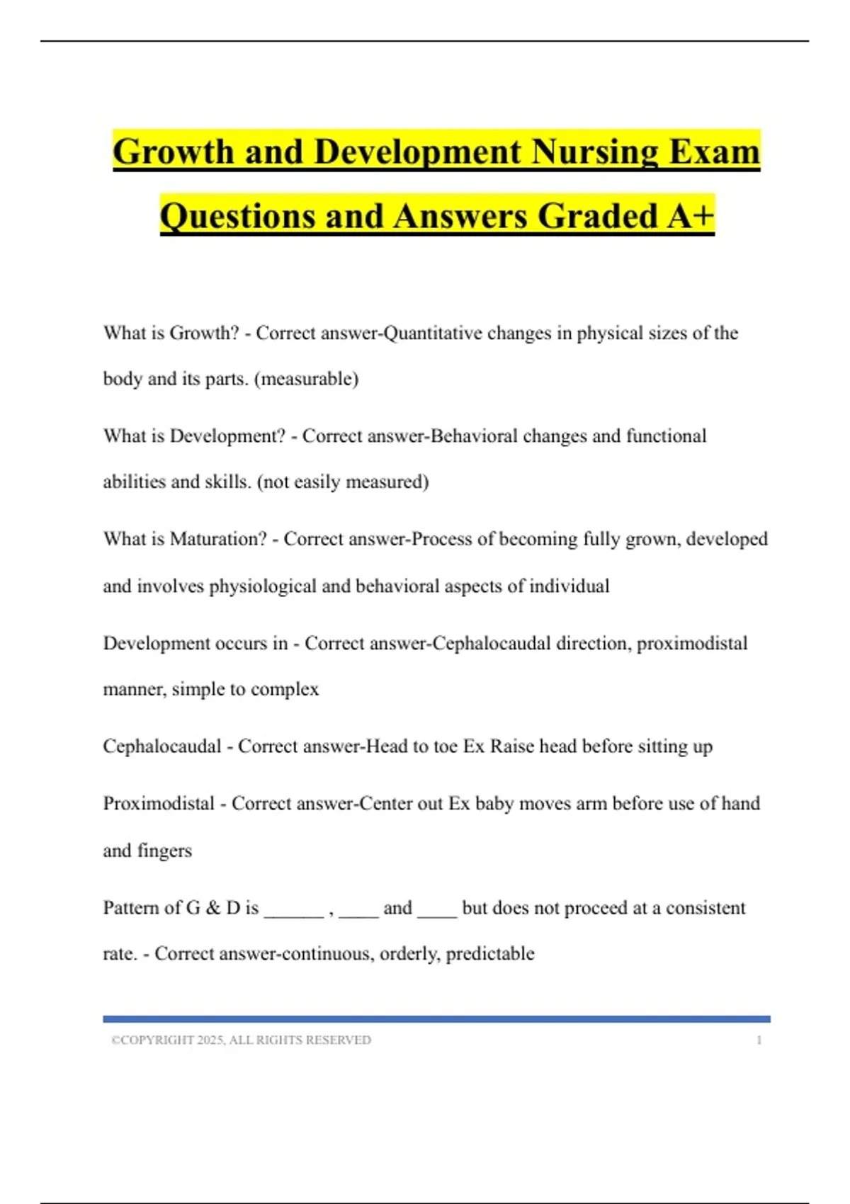 Growth and Development Nursing Exam Questions and Answers Graded A+