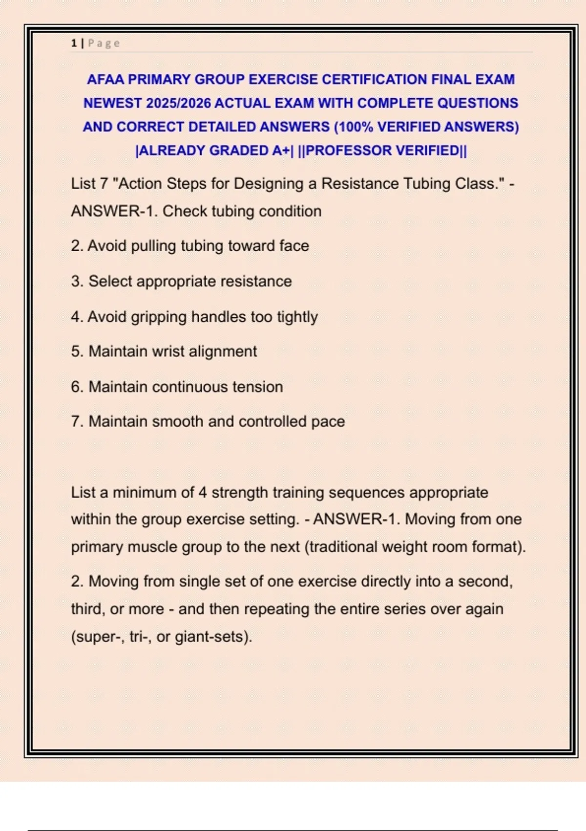 AFAA PRIMARY GROUP EXERCISE CERTIFICATION FINAL EXAM