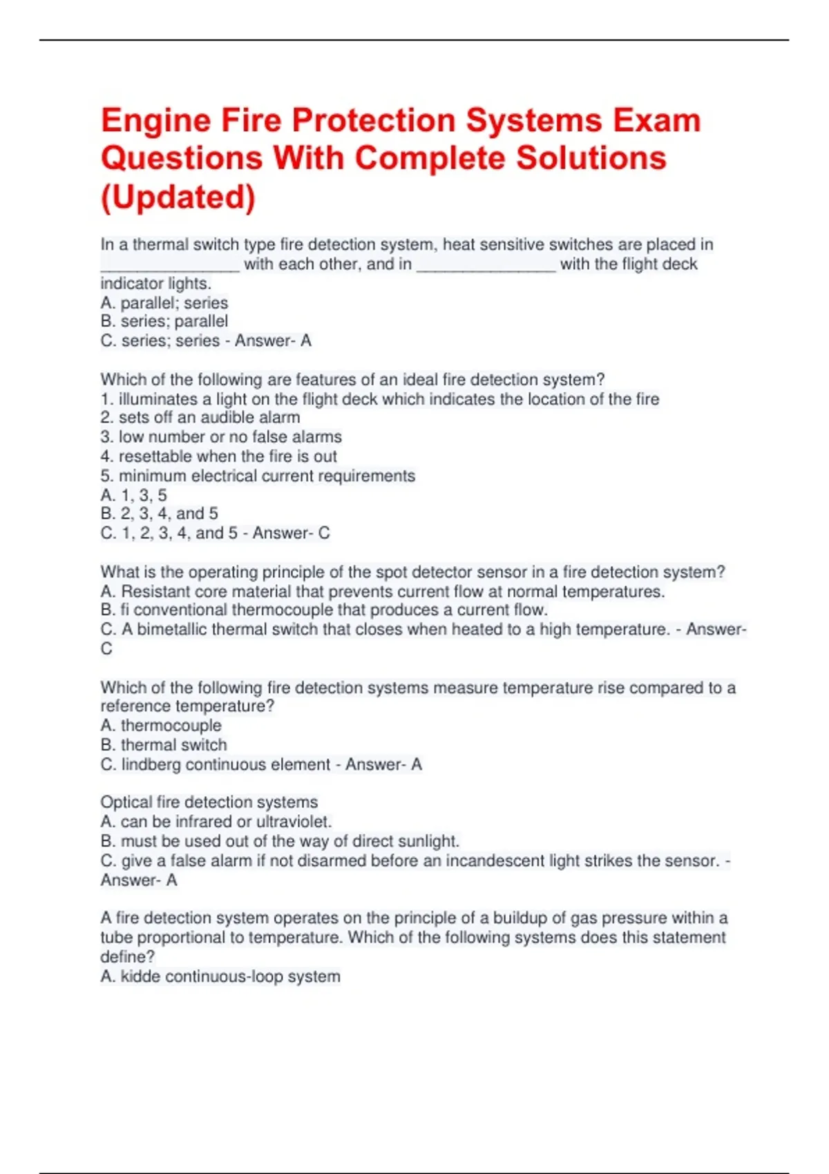 Engine Fire Protection Systems Exam Questions With Complete Solutions (Updated)