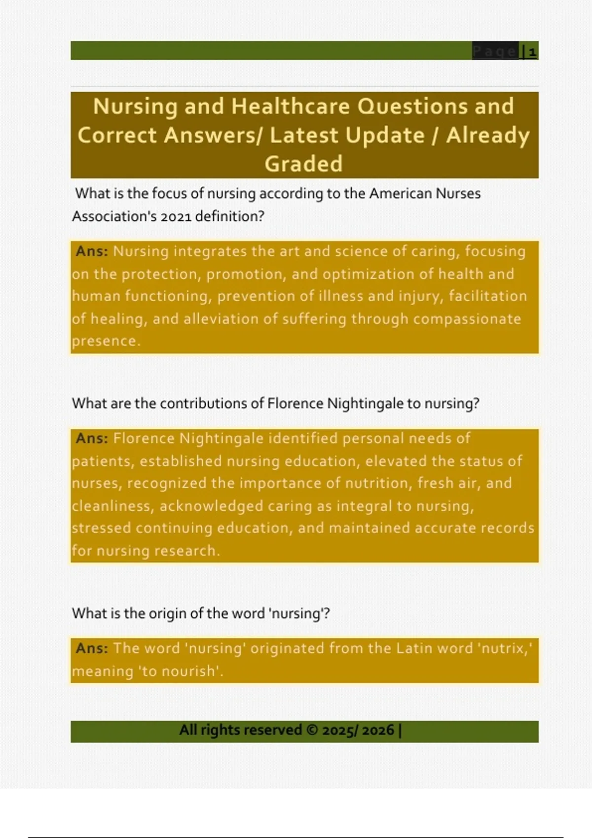 Nursing and Healthcare Questions and Correct Answers/ Latest Update / Already Graded