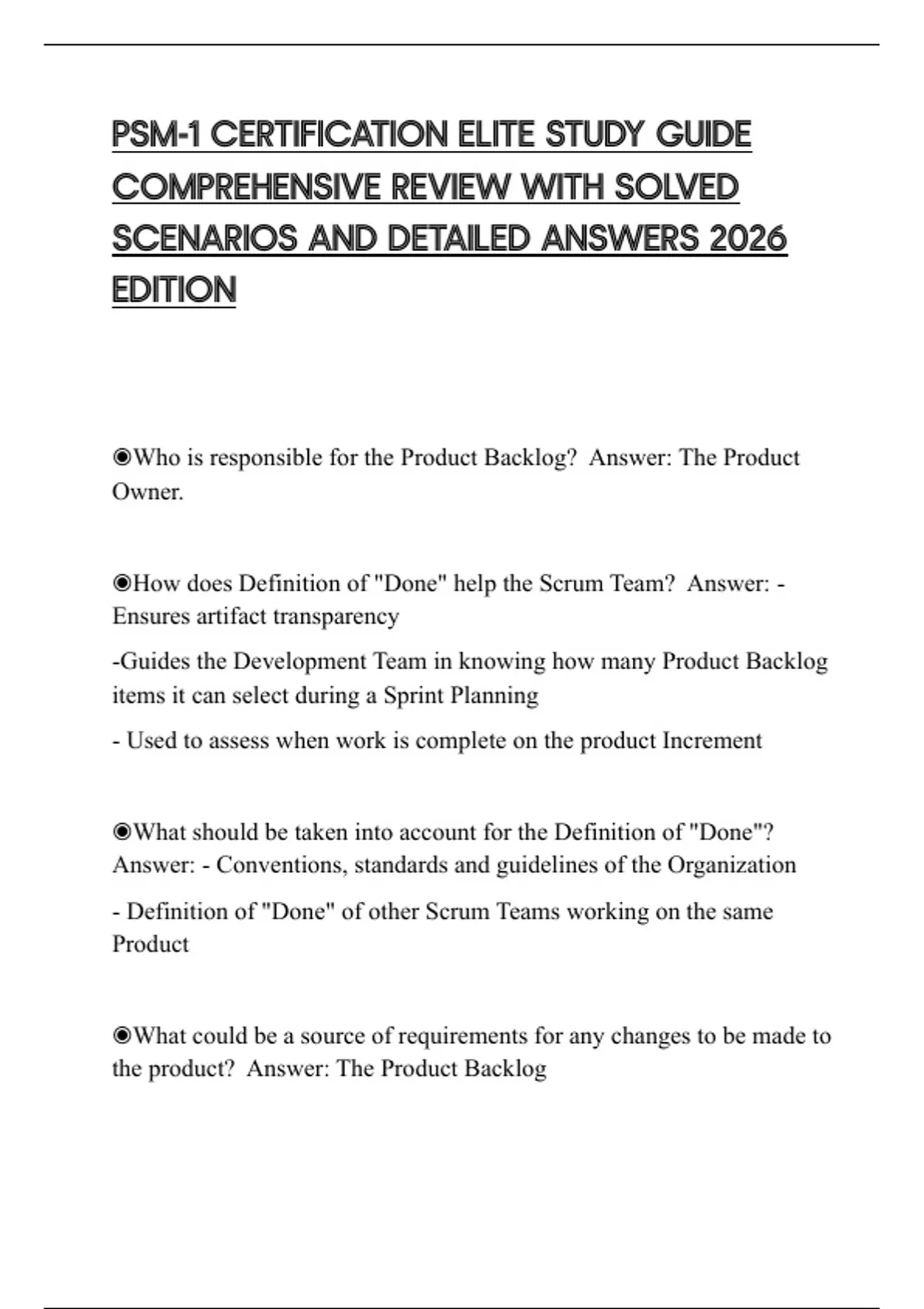 ◉How does Definition of "Done" help the Scrum Team? Answer: -