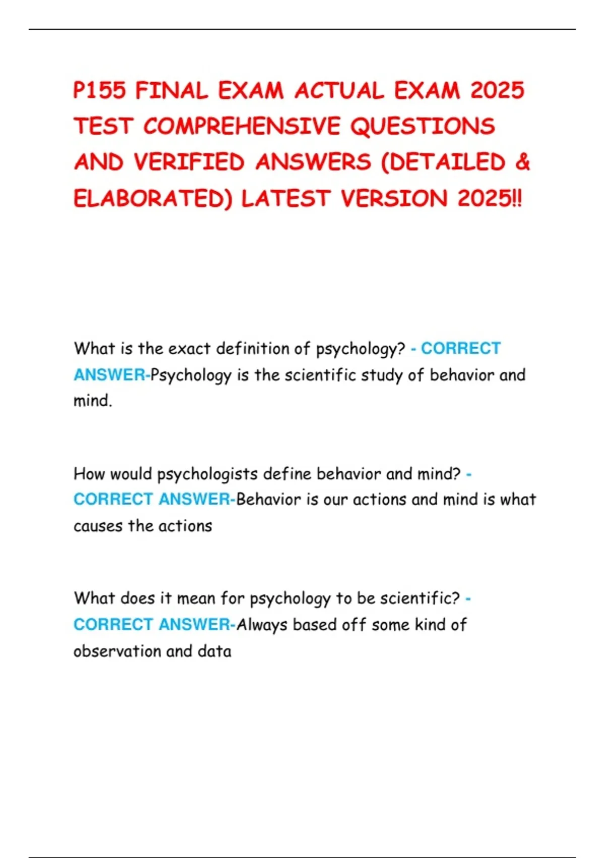P155 FINAL EXAM ACTUAL EXAM 2025