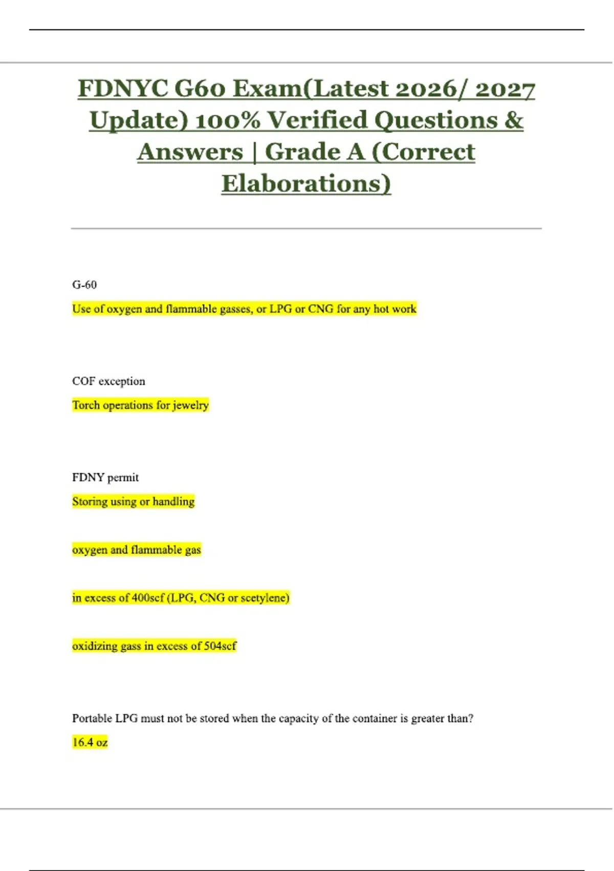 FDNYC G60 Exam(Latest 2026/ 2027 Update) 100% Verified Questions & Answers | Grade A (Correct Elaborations)
