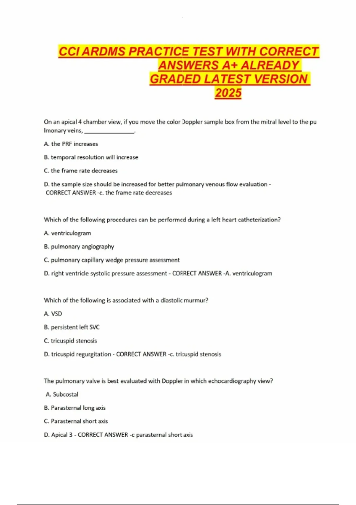 CCI ARDMS PRACTICE TEST WITH CORRECT ANSWERS A+ ALREADY GRADED LATEST VERSION 2025